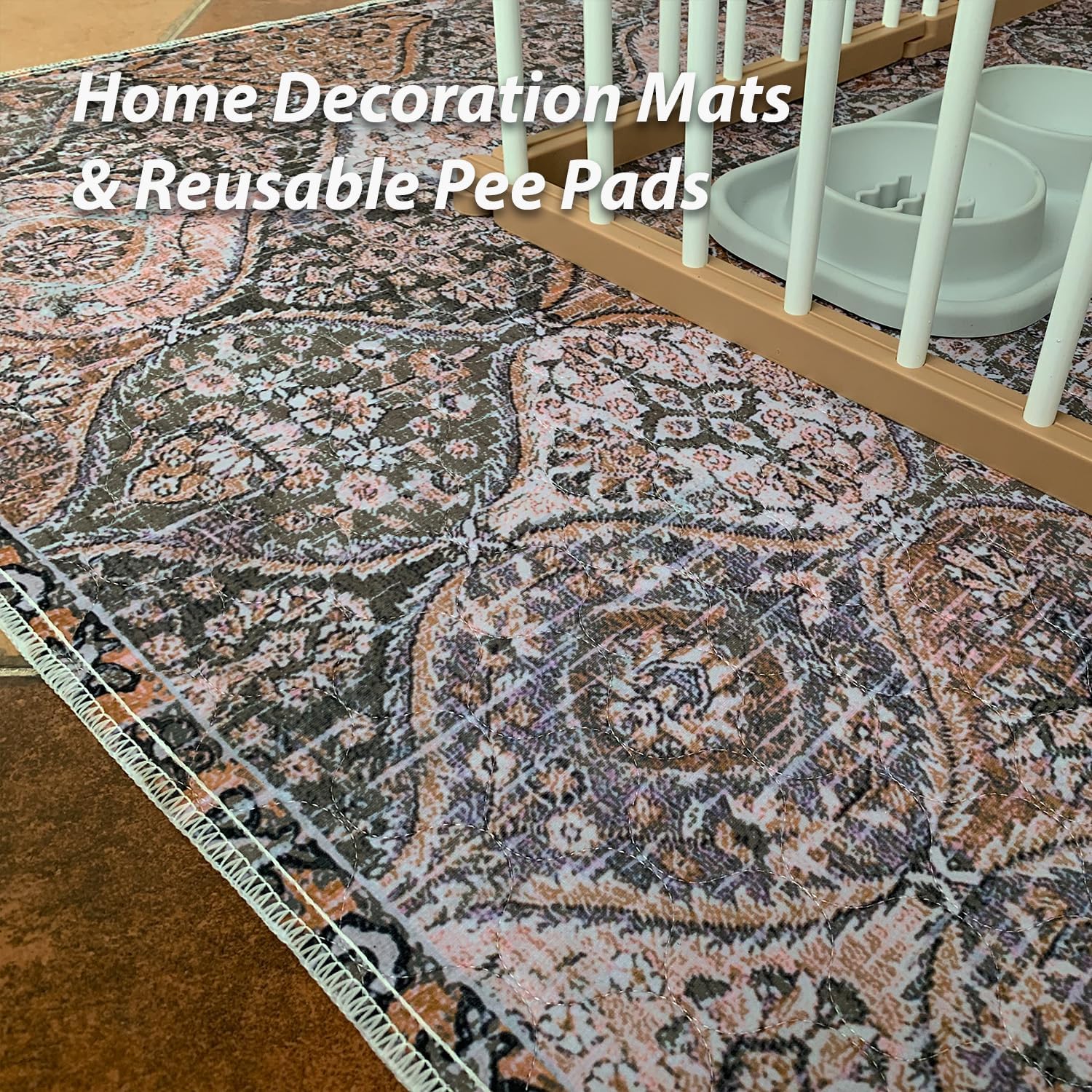 nunubaby Washable Pee Pads for Dogs, Stylish, Non-Slip and Leak-Proof Pee Pads. Reusable Potty Pads for Dogs for Crates and Floors.(Brown/Multi, 36" x72")