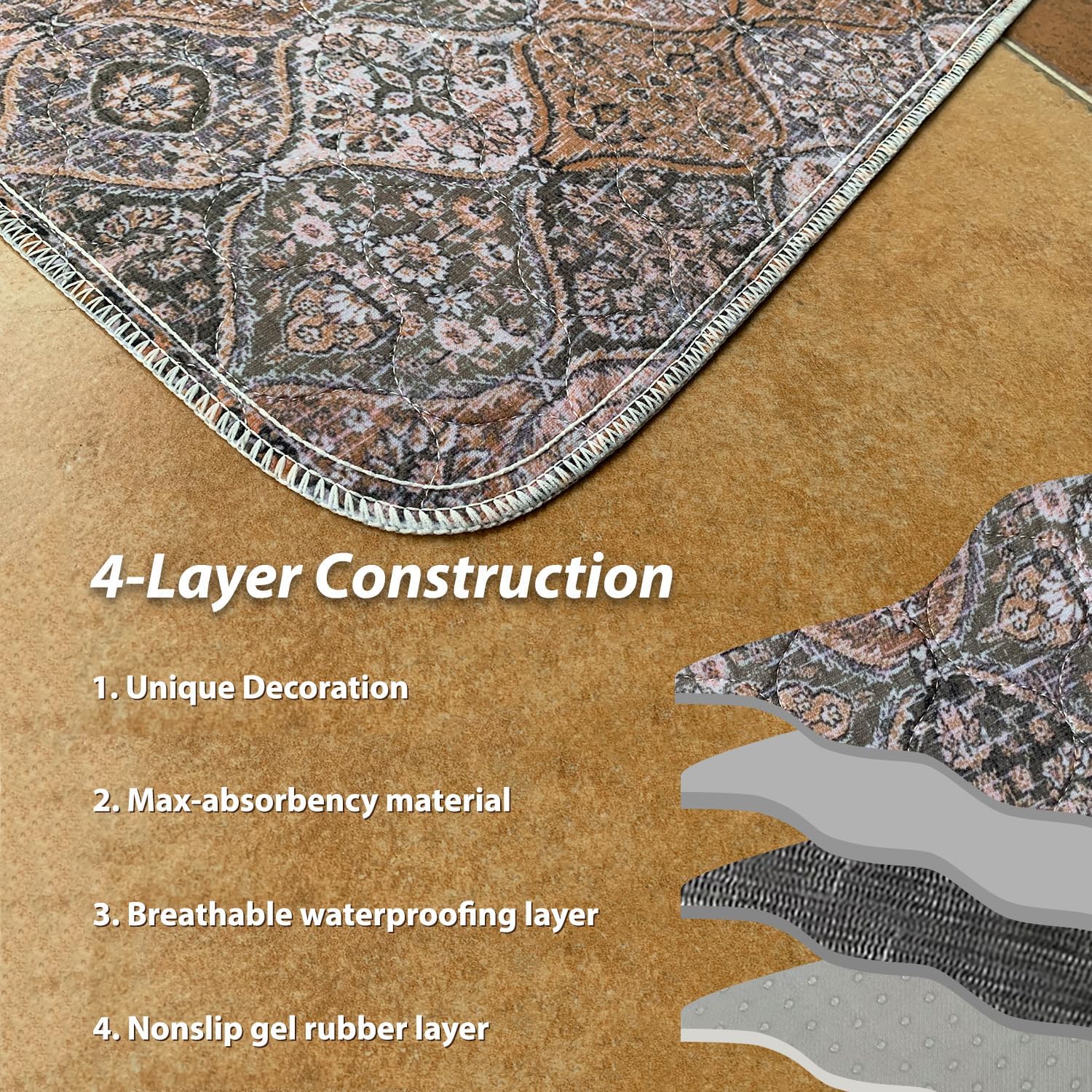 nunubaby Washable Pee Pads for Dogs, Stylish, Non-Slip and Leak-Proof Pee Pads. Reusable Potty Pads for Dogs for Crates and Floors.(Brown/Multi, 18" x24")
