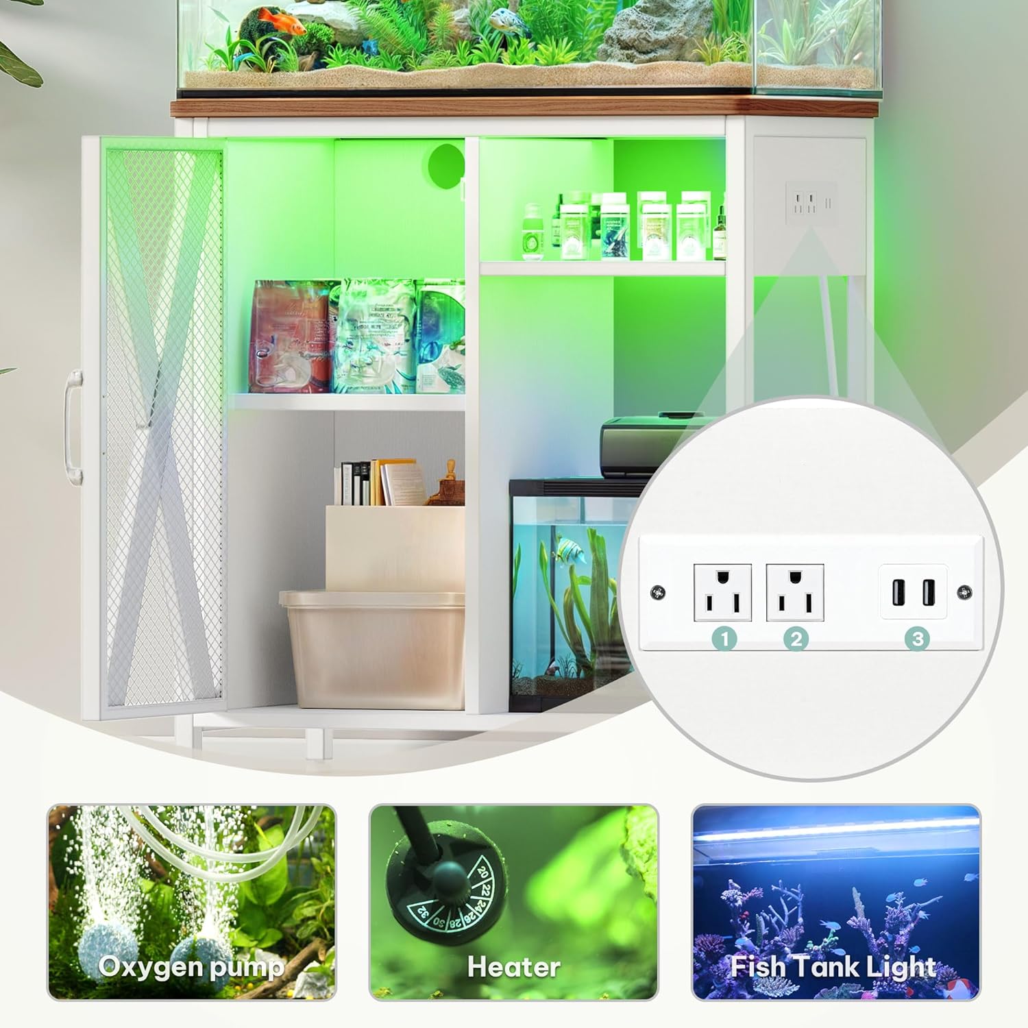 - Smart LED Lights: Enhance Your Aquatic Oasis with Our Captivating Aquarium Stand. Featuring Mesmerizing LED Lighting with RGB Customization, immerse yourself in a tranquil ambiance that can be tailored to suit any mood or occasion. Keep water away from outlets & led lights when turned on to prevent damage