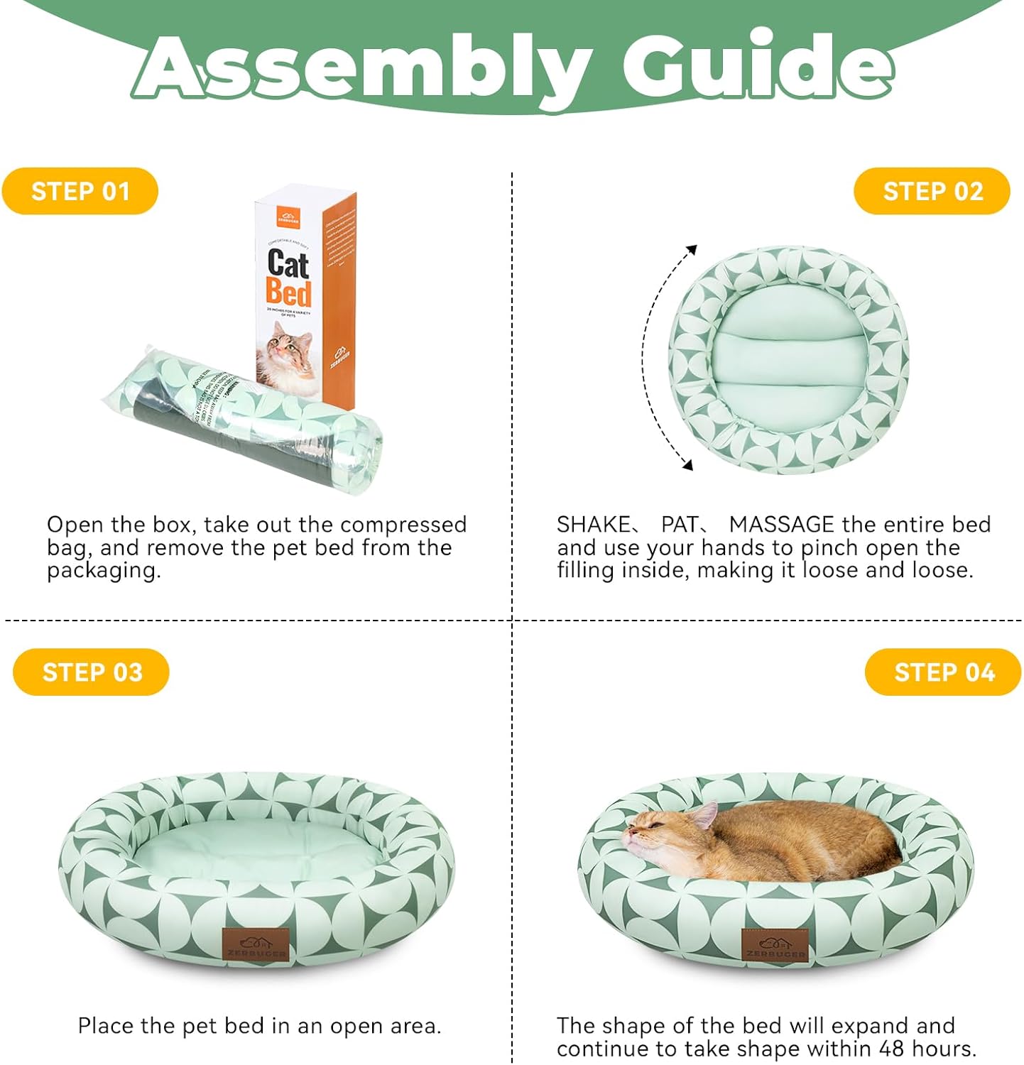 - EASY TO CLEAN: The lid is not removable. Just put the whole pet bed in the washing machine, wash and dry it. In order to maintain the durability of the pet bed, when using the washer and dryer, it needs to be dried with a gentle cycle, drum type, and low temperature. NOTE!!We Pet bed packed in a compression bag,short plush material easy compression and easy recovery, When you receive the product, you can turn over the cat bed several times and keep for 2-3 days to restore shape, then you can use it for your Love pet!