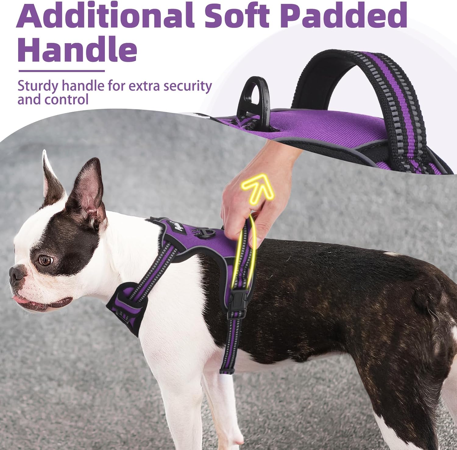 PUPTECK No Pull Dog Harness Small Sized, Adjustable Reflective Dog Harness with Handle Easy Control, Comfortable Soft Padded Pet Vest Harness for Small Dogs, Solid Purple S