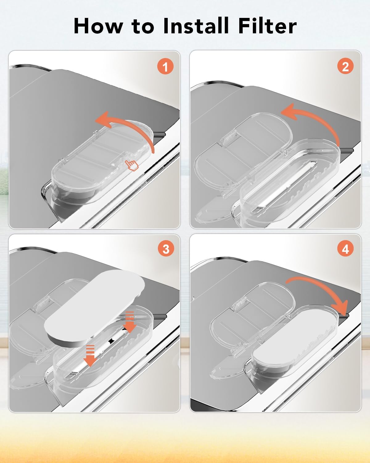 - Note: Please soak and clean the new filter in clean water for 5 minutes before using it to prevent the activated carbon dust from shedding into the water