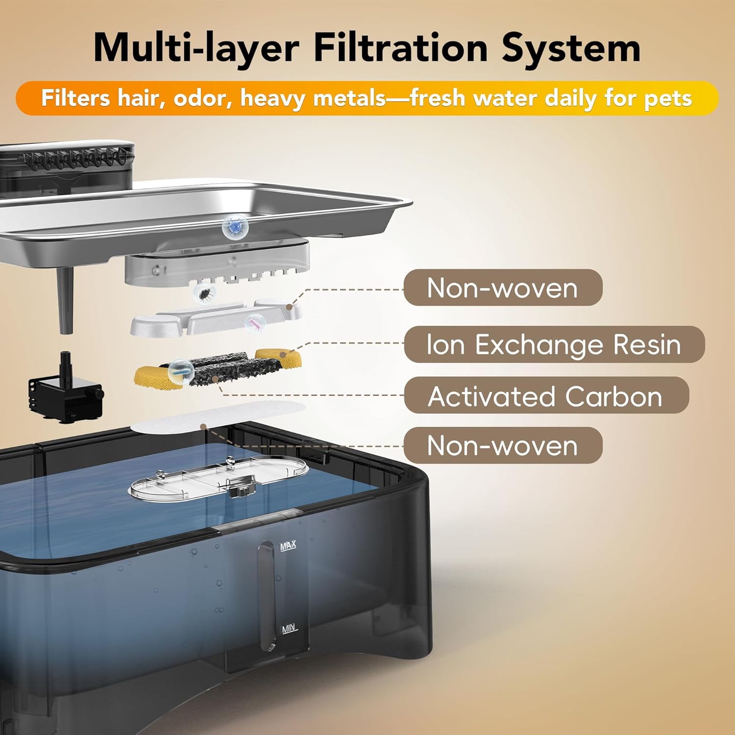 - Compatibility: This filter is only compatible with 8.5L/2.25Gal 4 Heights Adjustable Pet Fountain