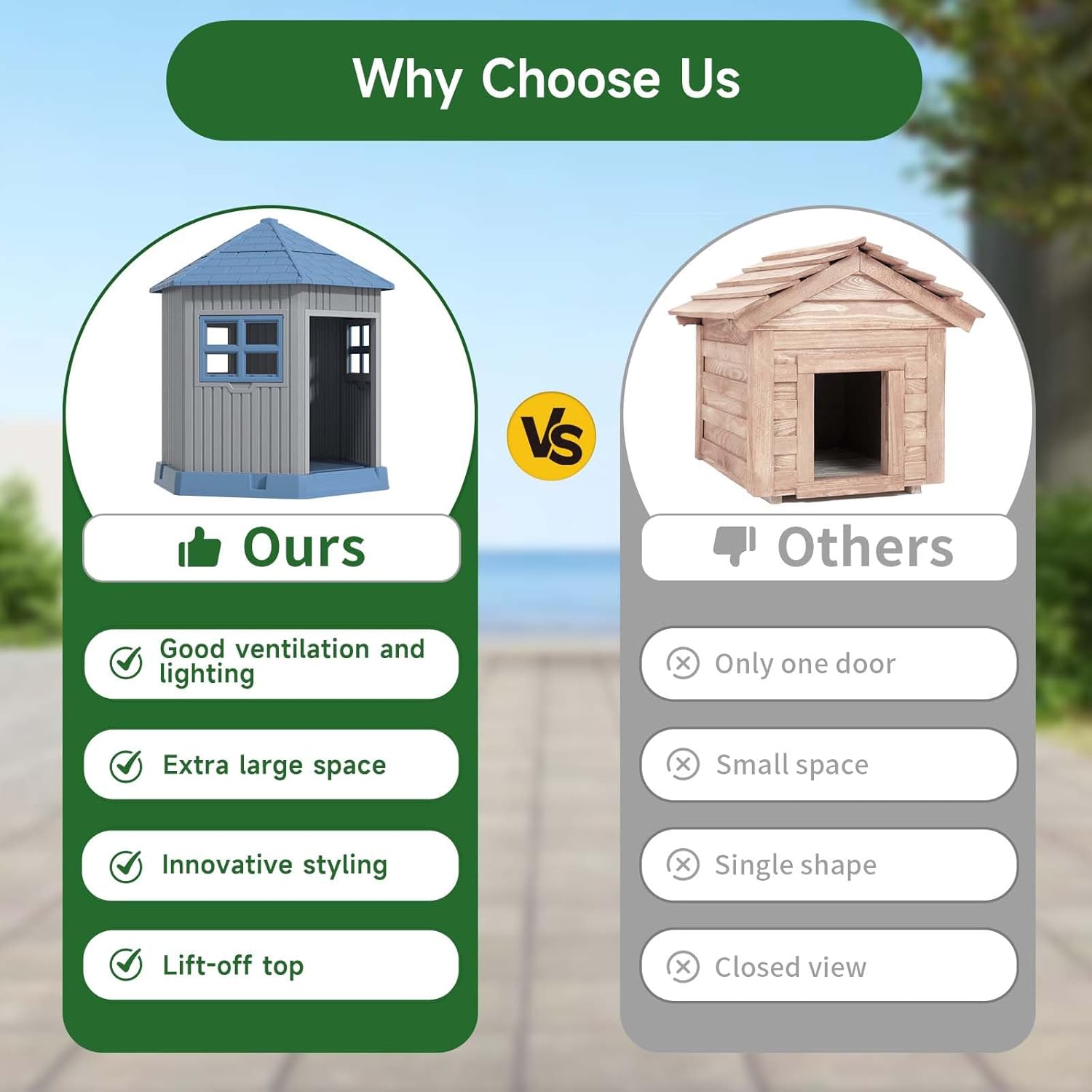 - Easy to Clean: Our dog houses are designed with a removable roof, which makes cleaning extremely easy. All you need to do is remove the roof to thoroughly clean the inside of the kennel and ensure a clean and hygienic living environment for your dog.