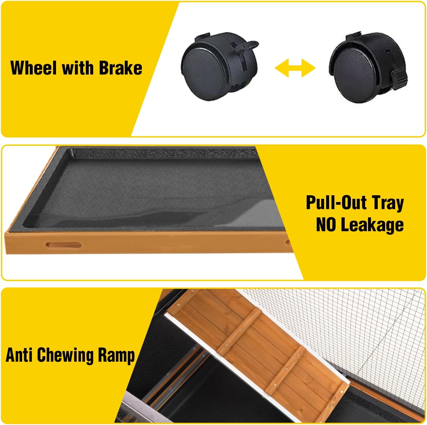- Convenient Wheels with Brakes:Equipped with 4 smooth-rolling wheels, including 2 lockable brakes, this cage allows easy mobility while keeping the enclosure securely in place when needed