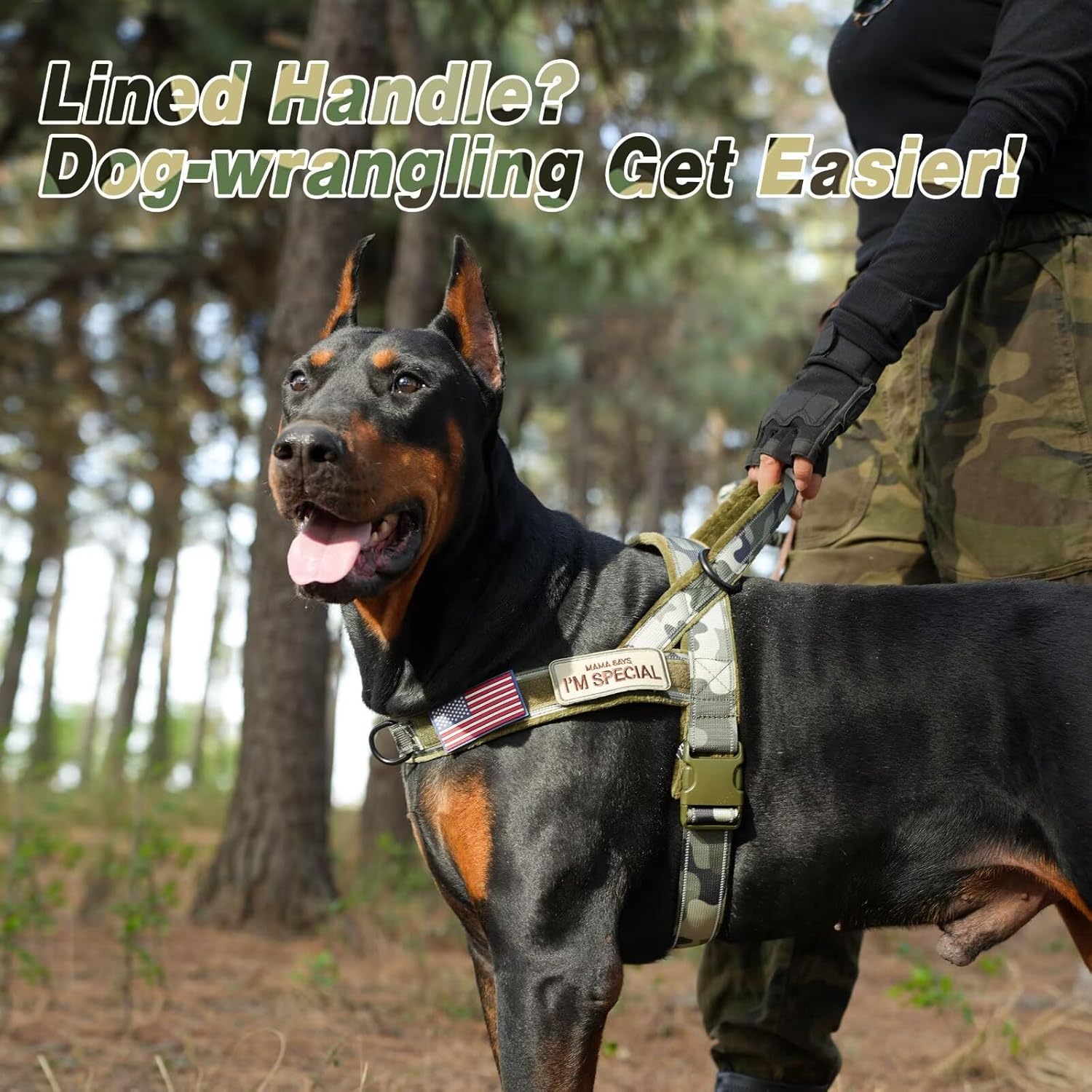- Swappable Patches: Newly Forestpaw tactical dog harness has a long velcro area,paired with 3 patches, you can put the patches "MAMA SAY I'M SPECIAL" or the flag on it to make your dog more eye-catching and handsome when outdoor training