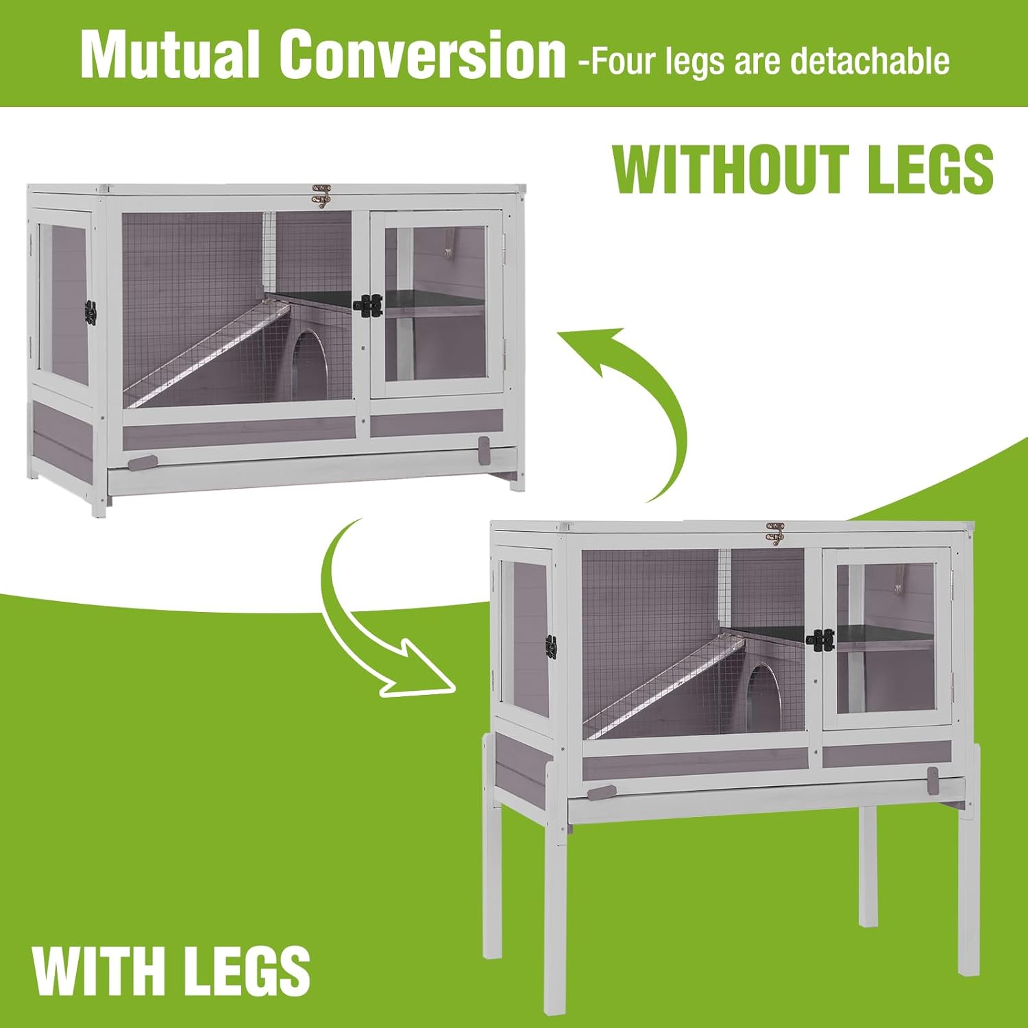 - 【Detachable Legs】Detachable legs offer flexibility.You can choose to place the cage on a table without the legs or fix the legs to the floor.
