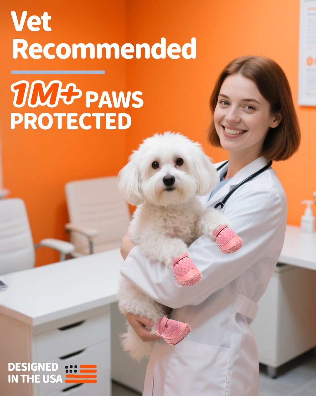 Dog Shoes for Small Dogs, Double Binding Straps Puppy Boots & Paw Protectors for Summer Hot Pavement, Winter Snow, Dog Booties with Anti-Slip Rubber Soles for Beach Hardwood Floor Pink Size 1