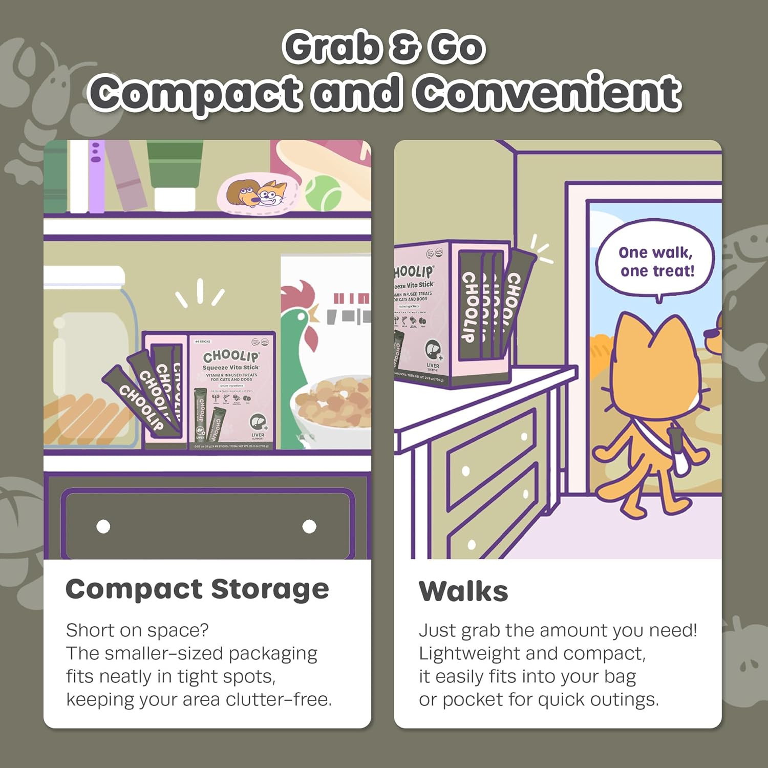 - COMPACT DISPENSER PACK: This Liver Support pack includes 49 sticks to treat your cat or dog. It’s perfect for quick, grab-and-go use, easy to carry in a bag for trips, or convenient to keep near your pet supplies.