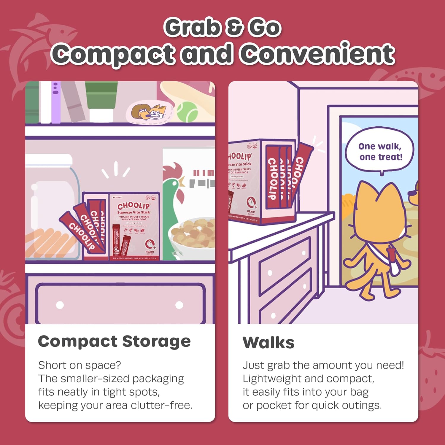 Grab & Go Squeeze Vita Stick Lickable Treats for Dogs & Cats. 49 Heart Support Sticks with Essential multivitamins. Soft and Tasty Paste for All Life Stages, Supporting Heart Health