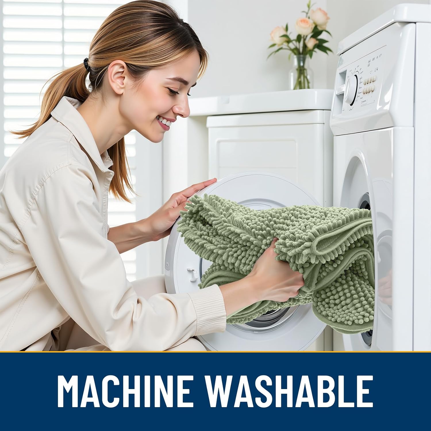 Smiry Dog Door Mat for Muddy Paws 47x24, Absorbs Moisture and Dirt Doormat, Non-Slip Washable Quick Dry Chenille Front Door Mat Indoor Entrance, Entryway Carpet for Inside Floor, Sage Green