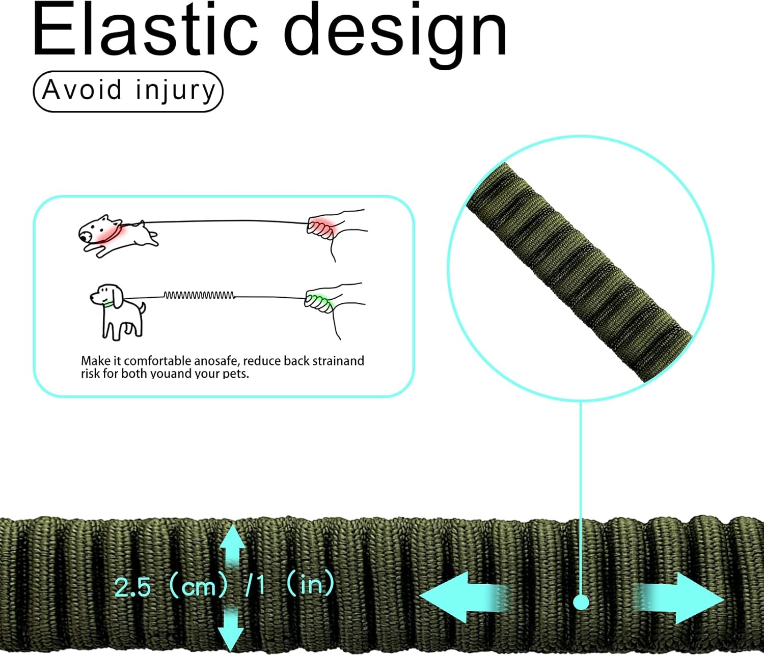 - Traffic Handle Control: Short Bungee leash allows you to control your dog, Shock-absorbing Bungee to reduce strain during Dog pulling suddenly, minimizing shock, back strain and muscle damage caused by excessive pulling
