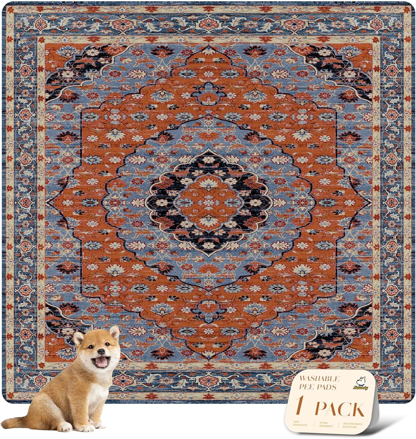 nunubaby Washable Pee Pads for Dogs, Stylish, Non-Slip and Leak-Proof Pee Pads. Reusable Potty Pads for Dogs for Crates and Floors.(Red/Floral, 72" x72")