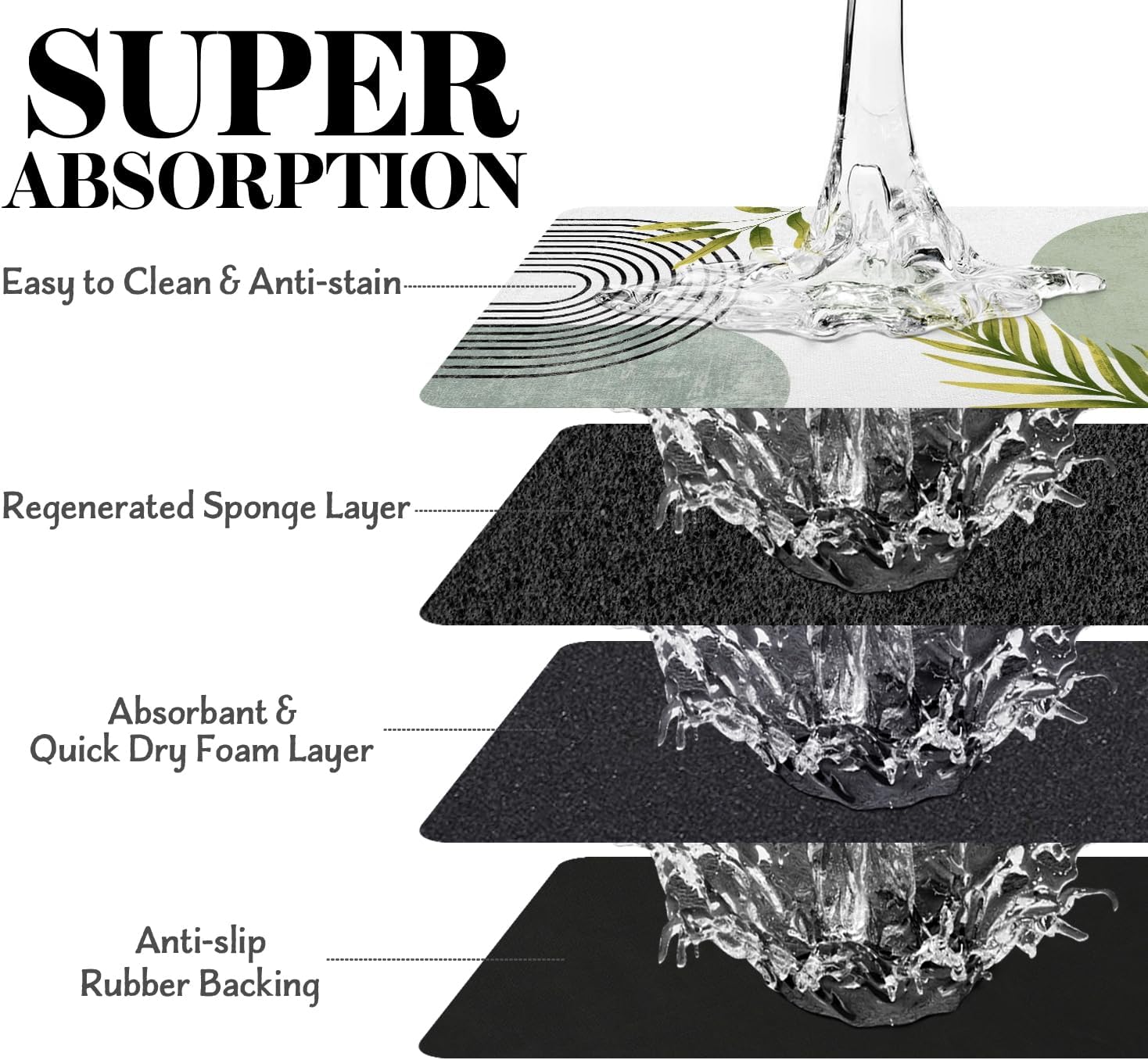 • Super Absorption: The dog mat for water bowl can absorb spilled water without leaving traces and dry quick, avoid wetting pet paws even for messy drinkers. And it does not attract pet hair like traditional silicone dog bowl mat.