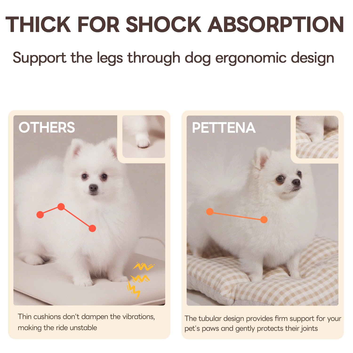 - đăTWO-PIECE SETăThickened cushion to reduce road vibration and ensure a good ride for your pet, while being friendly to your pet's feet. Our cushion allows dog to sleep more relaxed while traveling. Size: Cushion: 23.6"(60cm) * 13.78"(35cm) Cover: 29.5"(75cm) * 11"(28cm)