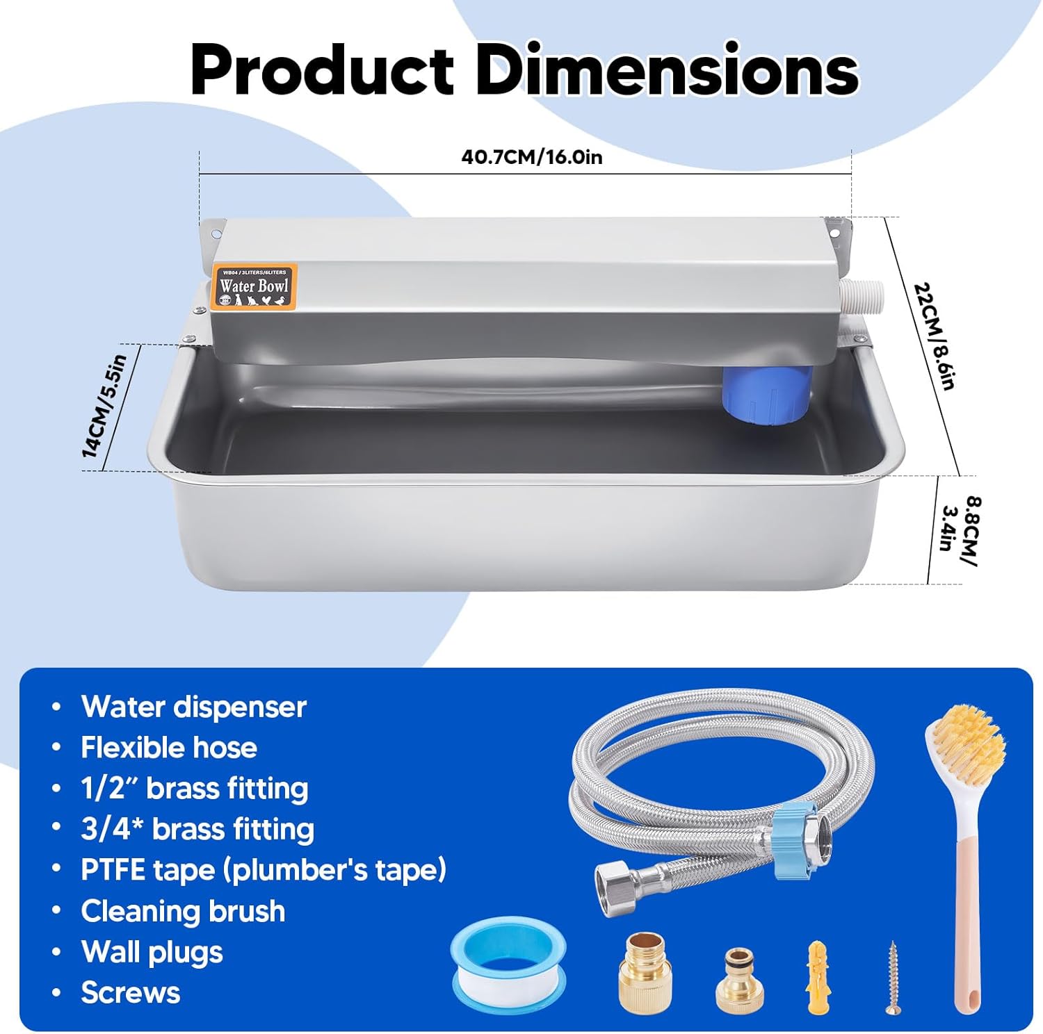 - EASY TO INSTALL:The dog water bowl dispenser comes with a complete set of accessories such as brushes, expansion screws, copper connectors, and detailed instructions. The copper fitting is suitable for connecting 3/4 inch faucets and is easy to install. Tips: If you encounter any obstacles during installation, please feel free to contact us and we will assist you to solve the problem