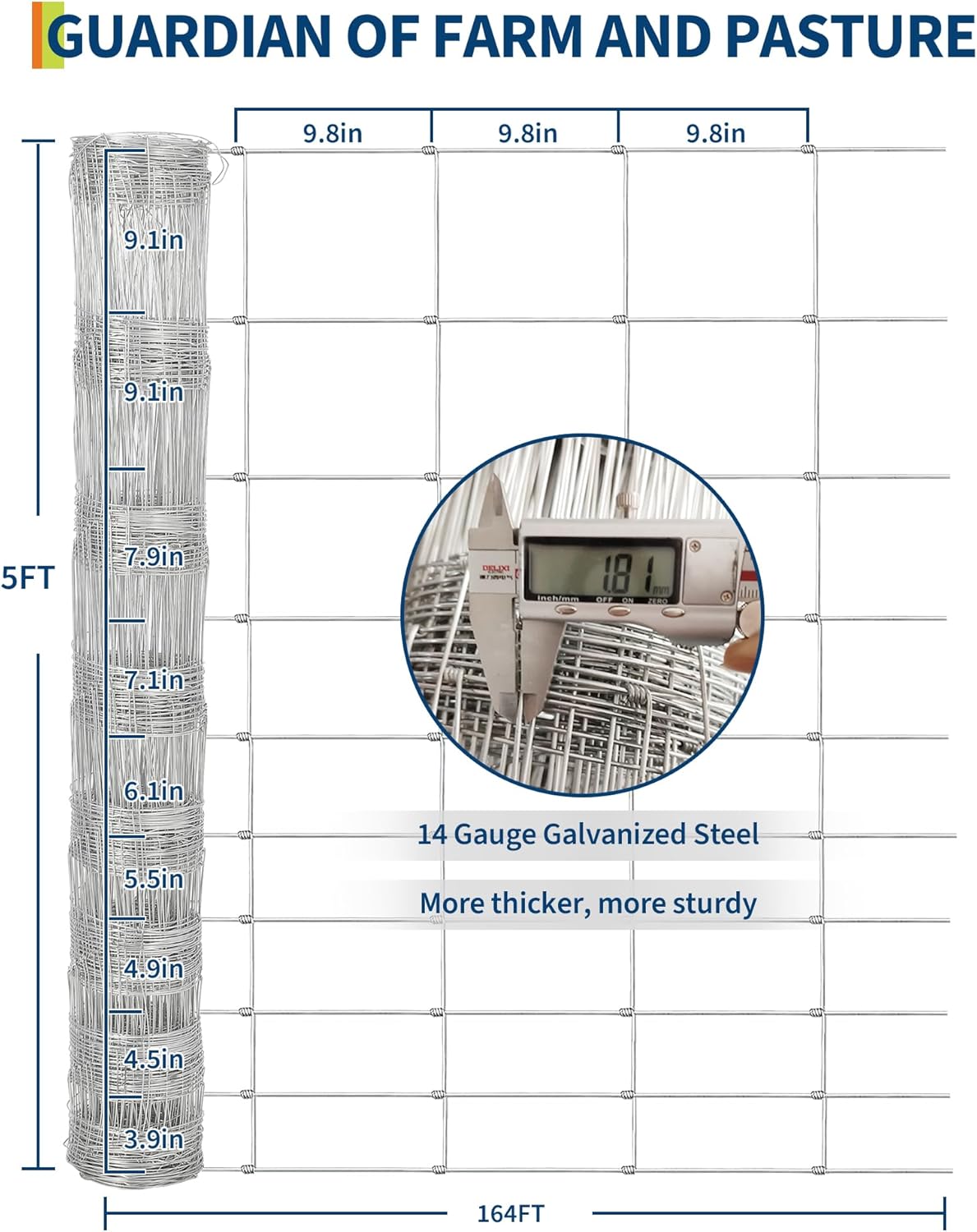 - Versatile Use: Measuring 5 ft x 164 ft, our welded wire fence is ideal for livestock such as cattle, horses, and goats, and is suitable for various fencing applications including farms, gardens, roads, and forests.