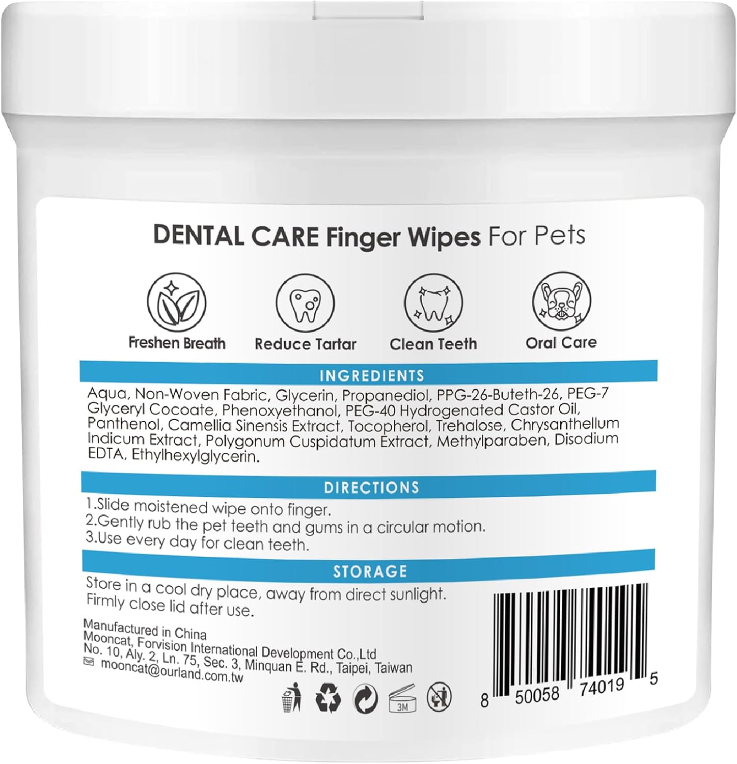 Mooncat Dental Finger Wipes for Dogs & Cats - Easy Teeth Cleaning to Remove Plaque, Tartar & Freshen Bad Breath - Gentle Tooth Wipes for Puppy & Kitten Care - 40 Counts