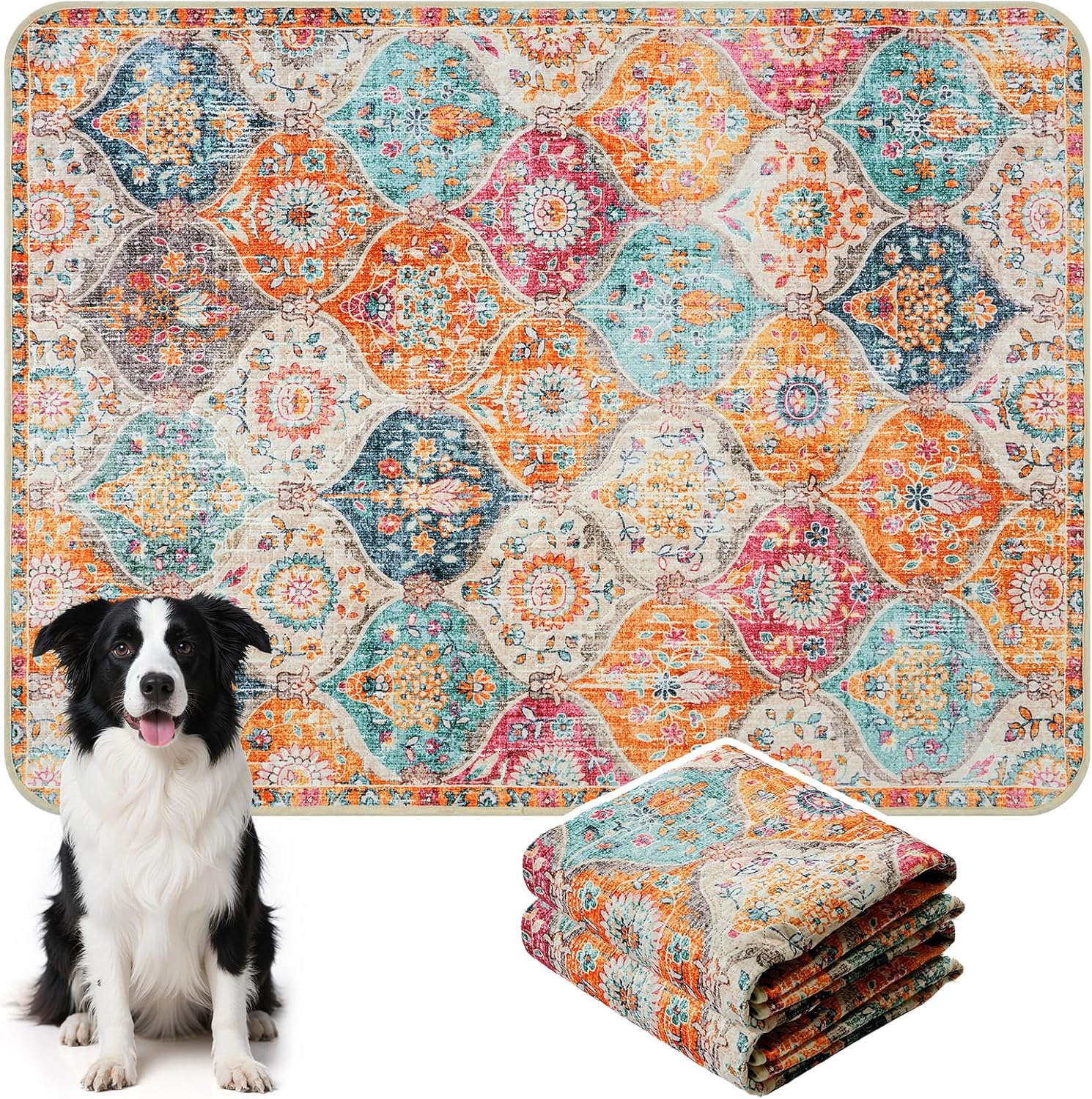 HAOCOO Washable Pee Pads for Dogs, (2 Pack) 3Ft x 4Ft Non-Slip Reusable Puppy Training Pads with Waterproof, Orange Super Absorbent Leak-Proof Whelping Pads Litter Mat for Pet Housebreaking