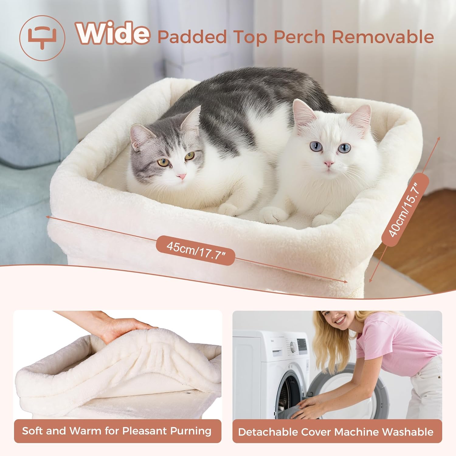 - Spacious Comfort and Easy Maintain: Our cat tree bed measuring a generous size at 16.5" x 16.5", is perfect for accommodating your big-boned kitty or even two medium-sized cats who love to snuggle up together. The plush padded cushion provides a cozy support for your cats to rest their furry heads, ensuring maximum comfort during their naps. The removable design help it easy to take off and makes cleaning a breeze.