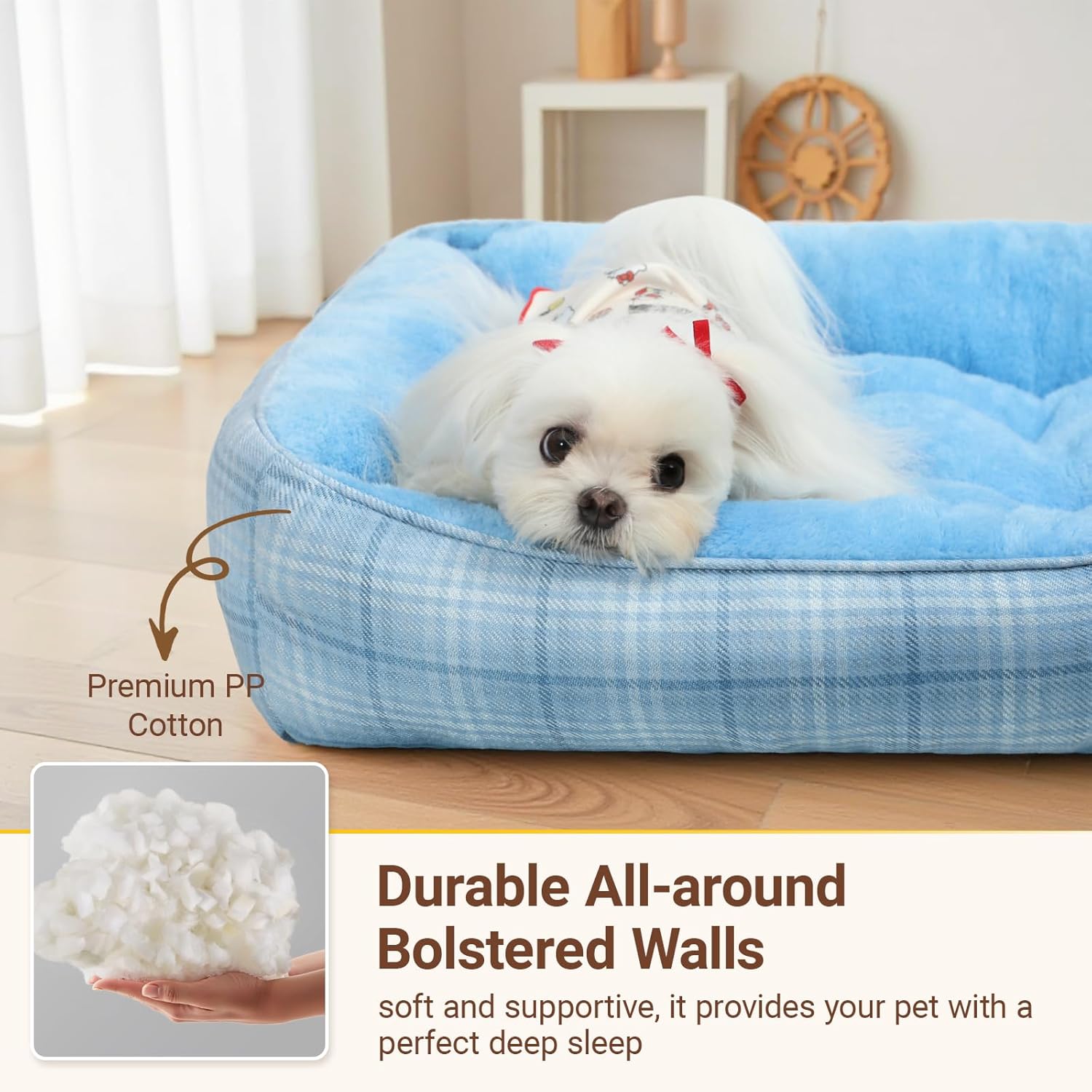 - 【Super Cozy Fabric】The dog bed for medium dogs features luxurious soft fabric that provide a calming feel and suits for all seasons to use. It also adopts fashionable checkered design that matches various styles of furniture and decorate your home.