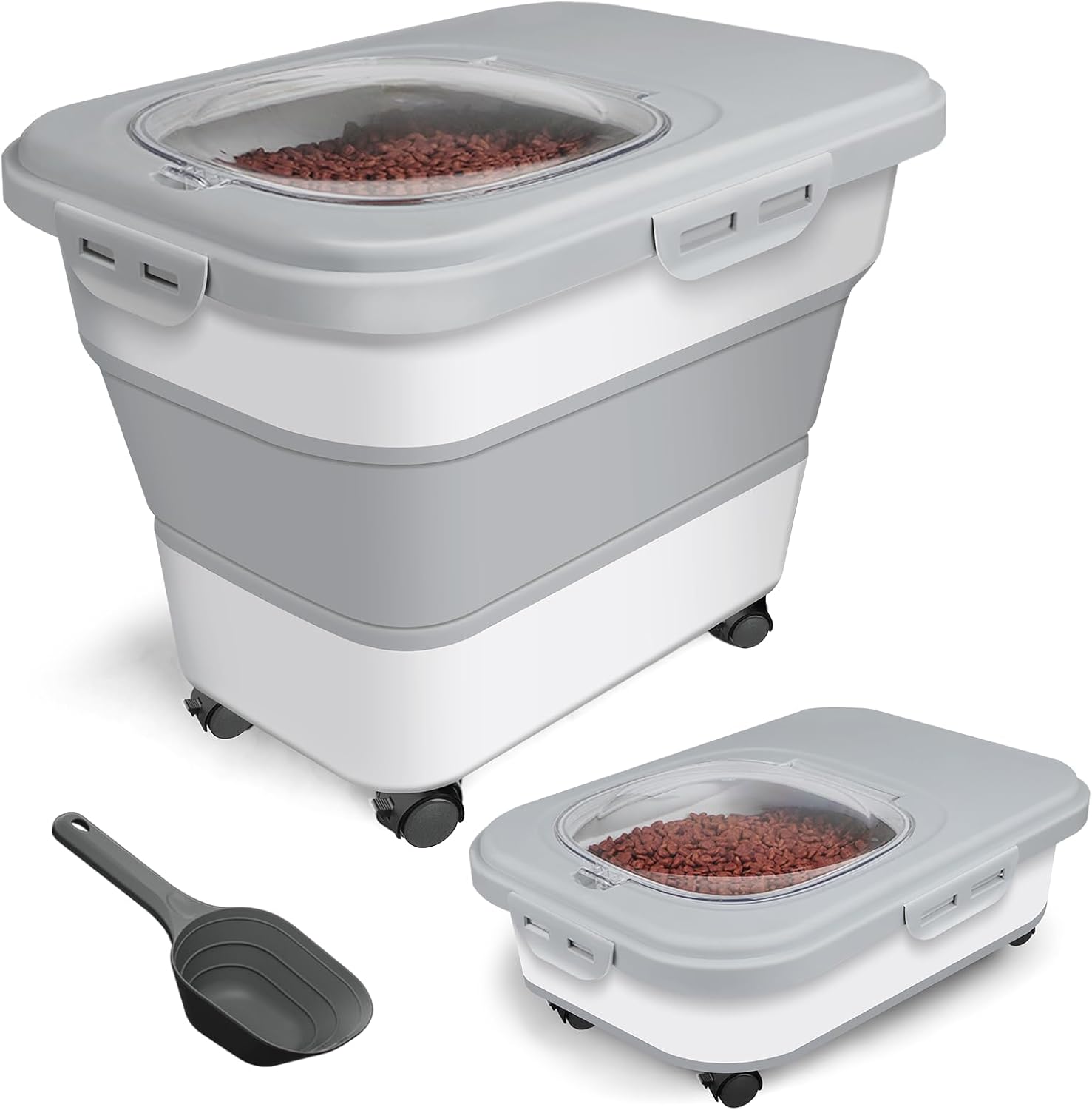 Dog Food Storage Container, 10-20lbs Collapsible Dog Cat Food Containers with Airtight Clear Flip-top,Rolling Wheel and Pet Food Scoop, Pet Food Storage Container Bin for Dog Cat Bird Pets