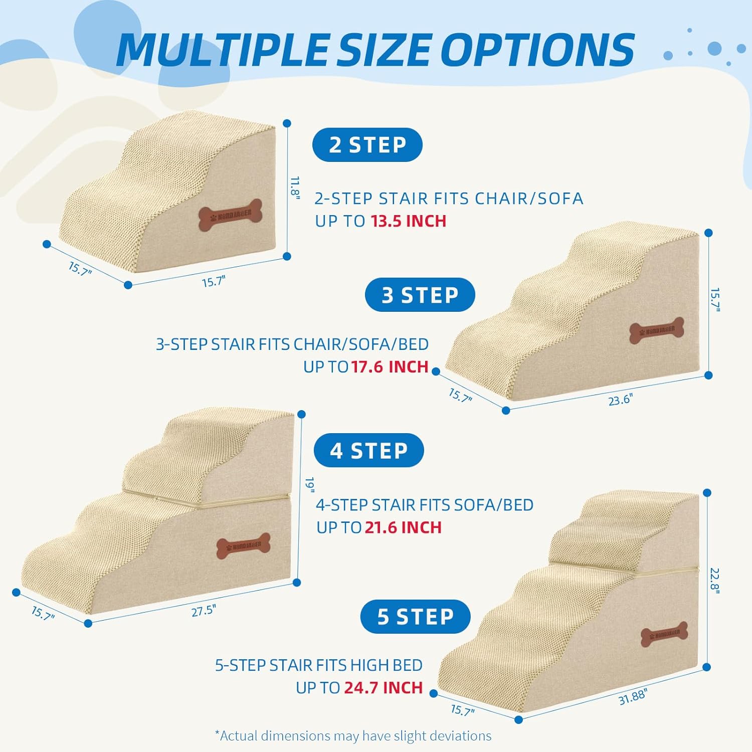 5-Step Spliceable Pet Stairs: Indoor& Outdoor Multi-Use with a Removable Cover and a Pocket, Best for Small Pets and Older Dogs Who Has Spine and Arthritis Issues to Get on High Beds, Beige(22.8" H)