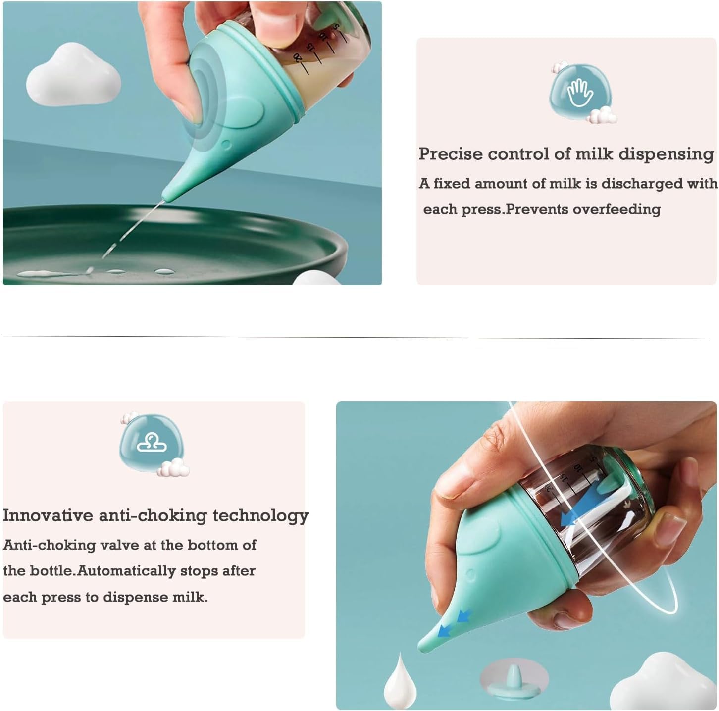 - Unique anti-choking design: puppy bottles for nursing are equipped with an anti-choking valve on the bottom. This unique feature allows control of milk flow and prevents your kitten or puppy from choking while feeding