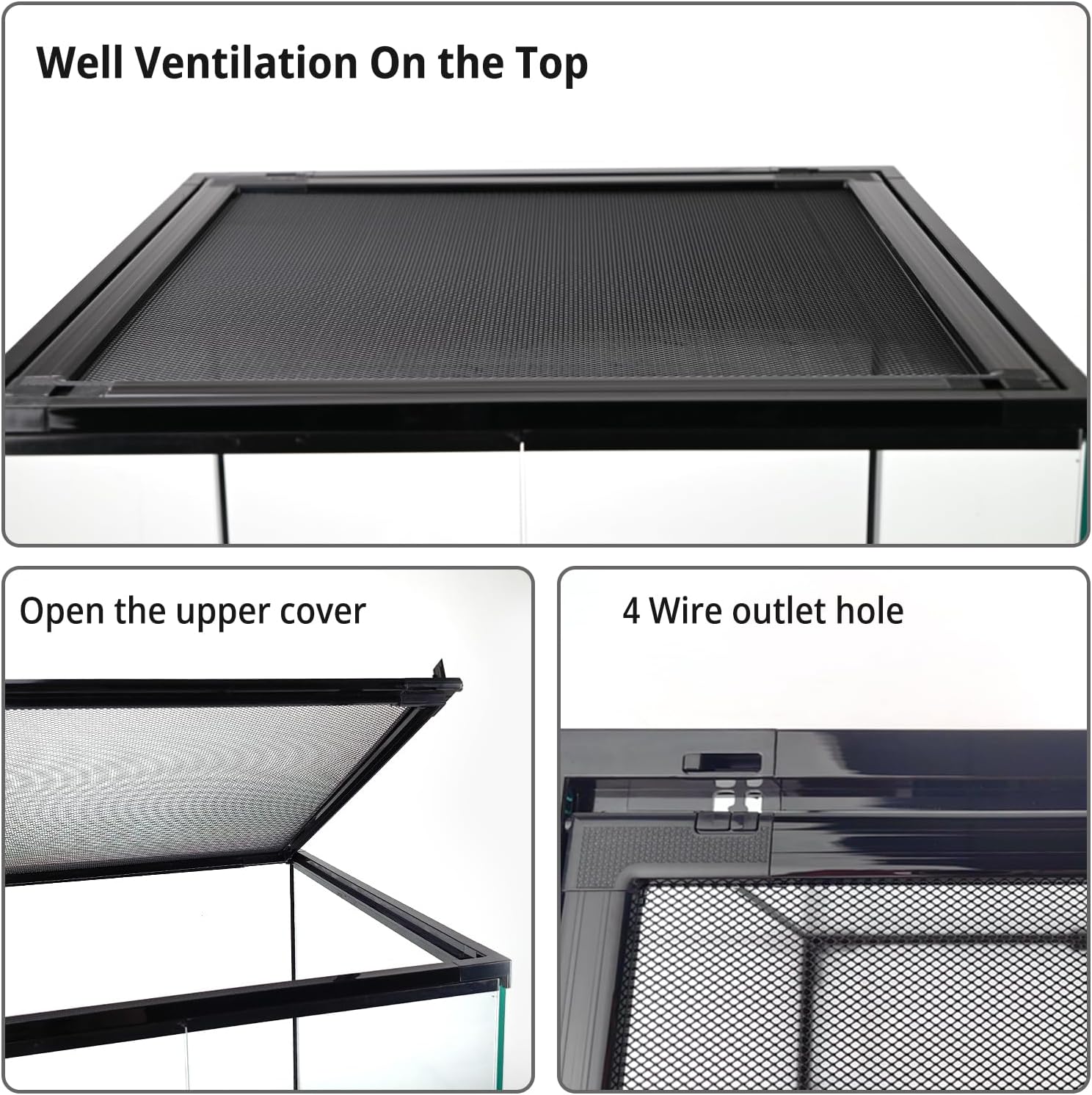 - ăLeak-Proof Base Designă:This tall tank boasts a sealed, leak-proof base with superior waterproofing compared to assembled glass tanks, making it suitable for both aquatic and terrestrial habitats. The elevated false bottom creates space underneath for heating elements, ensuring a perfect habitat temperature.