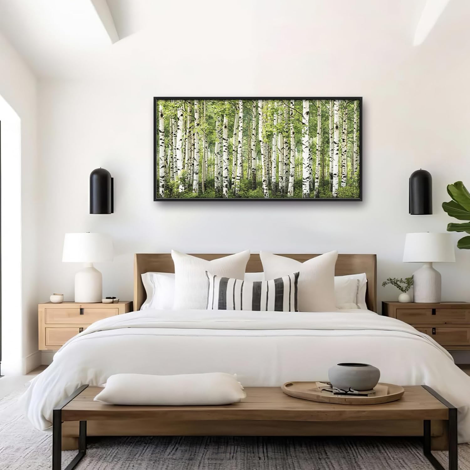 Extra Large Birch Tree Framed Wall Art for Living Room,Oversized Green Aspen Trees Forest Pictures Wall Decor,Canvas Print Painting Modern Artwork Bedroom Office Bathroom 60L" x 30W"
