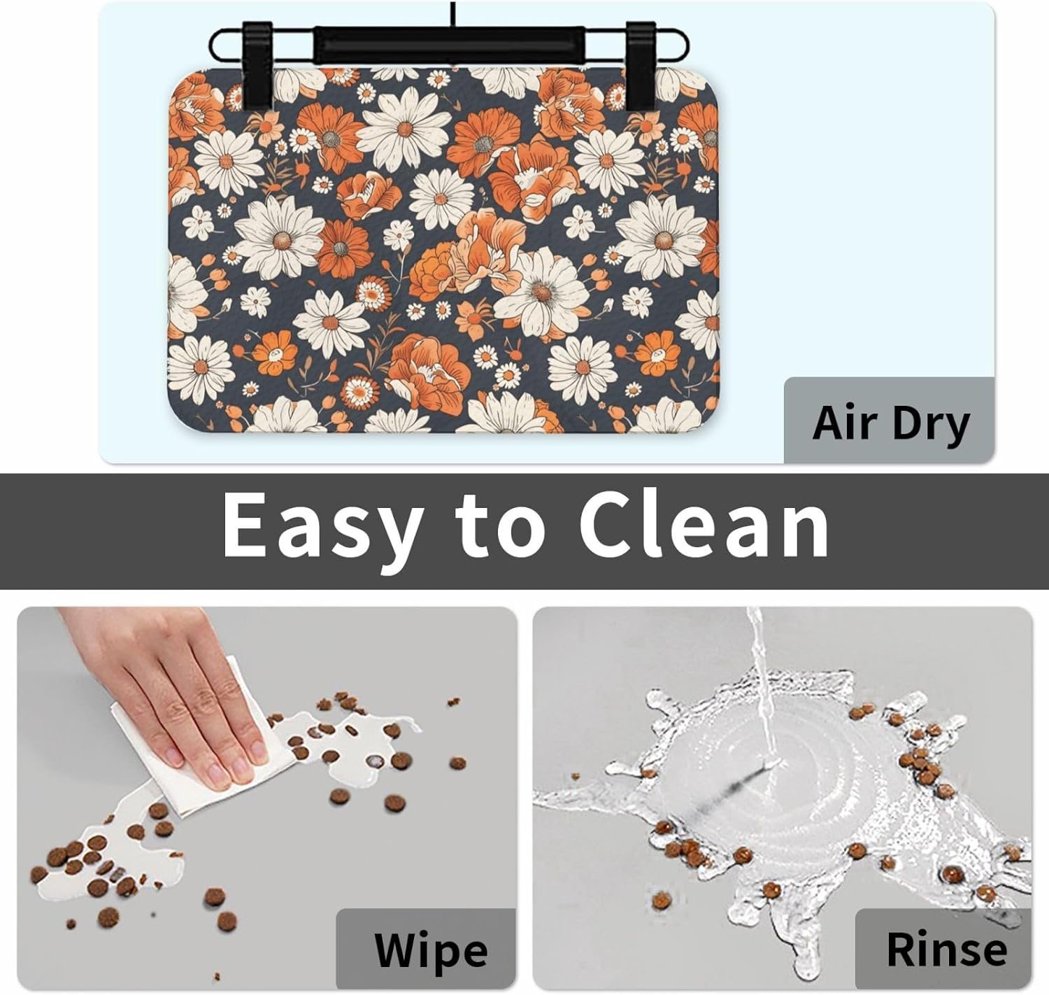 Watercolor Daisy Dog Food Mat Absorbent Bowl Mats No Stains Quick Dry Waterproof Pet Cat Placemats for Food and Water, 30x45cm