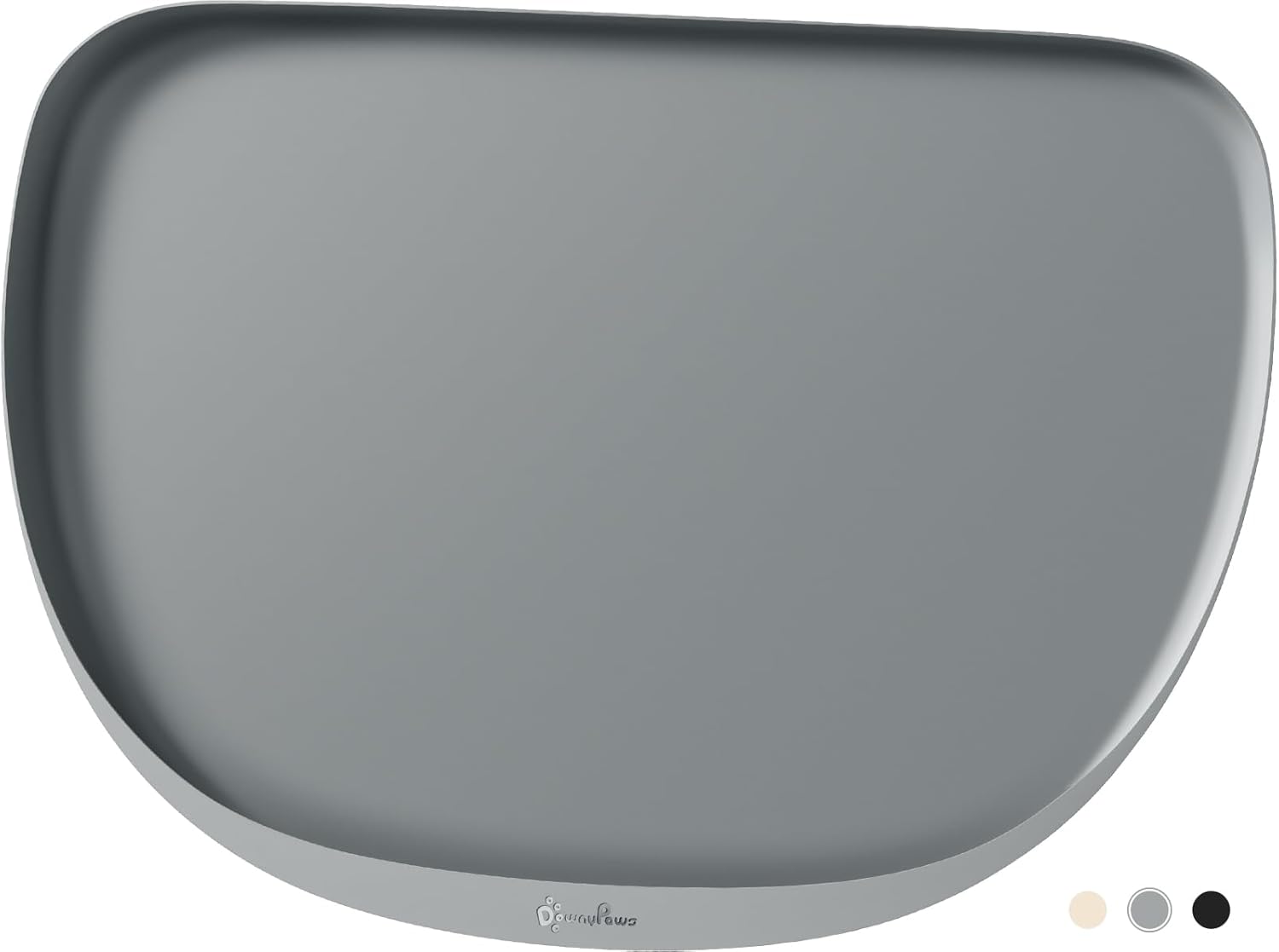 DownyPaws Dog Food Mats for Floors Waterproof, BPA Free Silcone Dog Bowl Mat, Non-Slip Pet Feeding Mat with High Raised Edge, Cat Placemat for Messy Drinkers, 24"×17", Light Gray