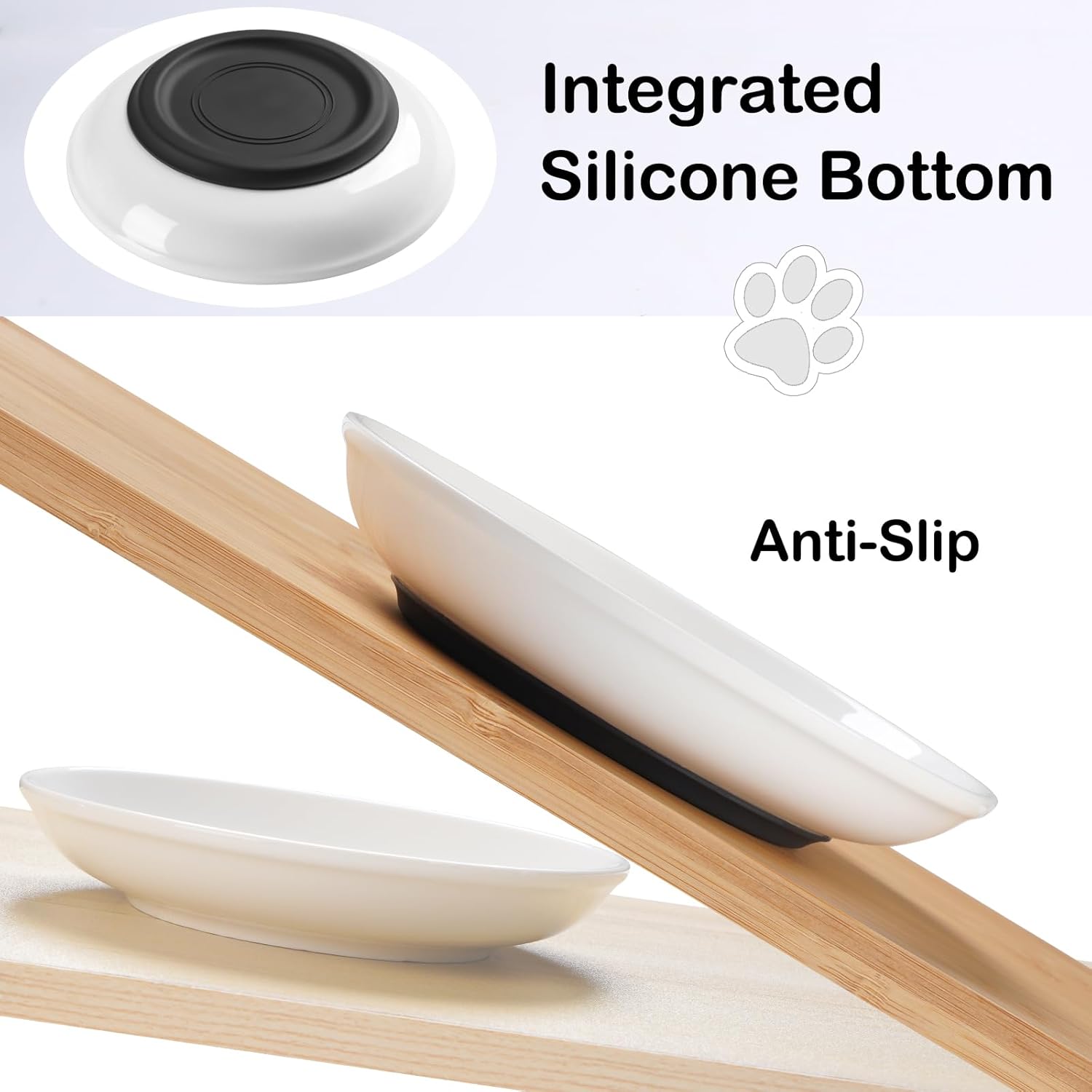 - 【Safe & Healthy Ceramic Material】: Our cat food bowls made of high-temperature fired food-grade ceramic are the same standard as human ceramic dishes, cadmium-free and lead-free, non-toxic and hygienic. Your cat will get a healthier eating.