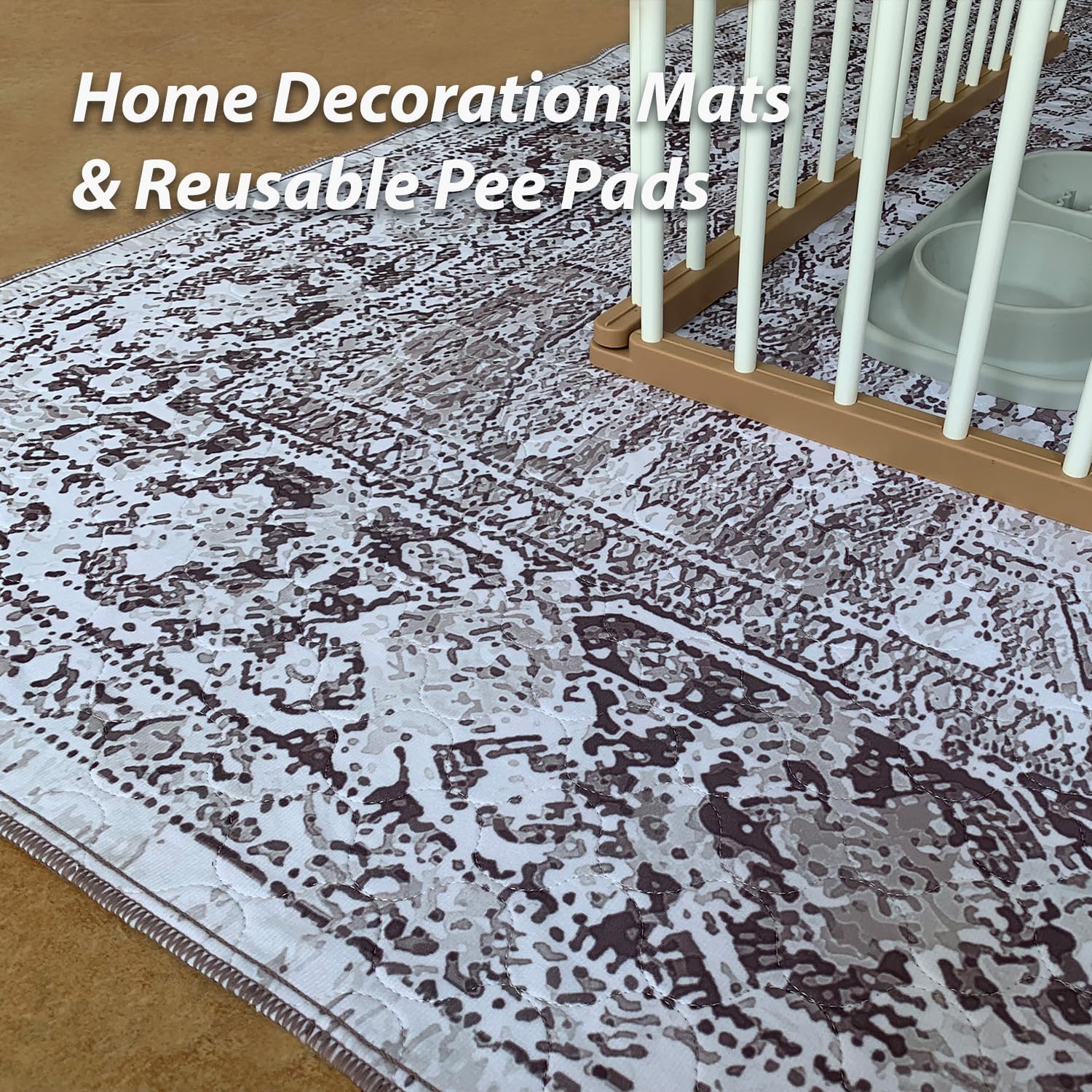 nunubaby Washable Pee Pads for Dogs, Stylish, Non-Slip and Leak-Proof Pee Pads. Reusable Potty Pads for Dogs for Crates and Floors.(Brown/Geo, 72" x72")
