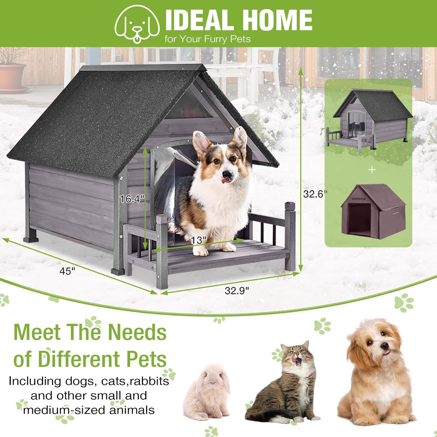 - SPACIOUS SPACE FOR MULTI BREEDS:Measuring 45in(L)Ă—32.9in(W)Ă—32.6in(H) with a roomy entrance of 16.4in(H)Ă—14in(W), our Dog House is perfectly sized for small and medium dogs. Suitable for both indoor and outdoor use, it's the perfect Puppy Shelter for any family pet
