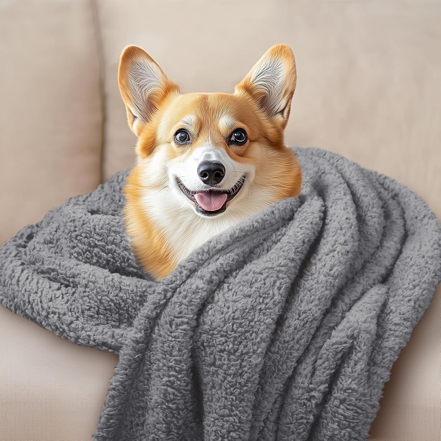 Luciphia 1 Pack 3 Calming Dog Blanket Fluffy Premium Fleece Pet Blankets Soft Sherpa Throw for Dogs Puppy Cat Grey/Beige/HazeBlue Medium (30" x20")