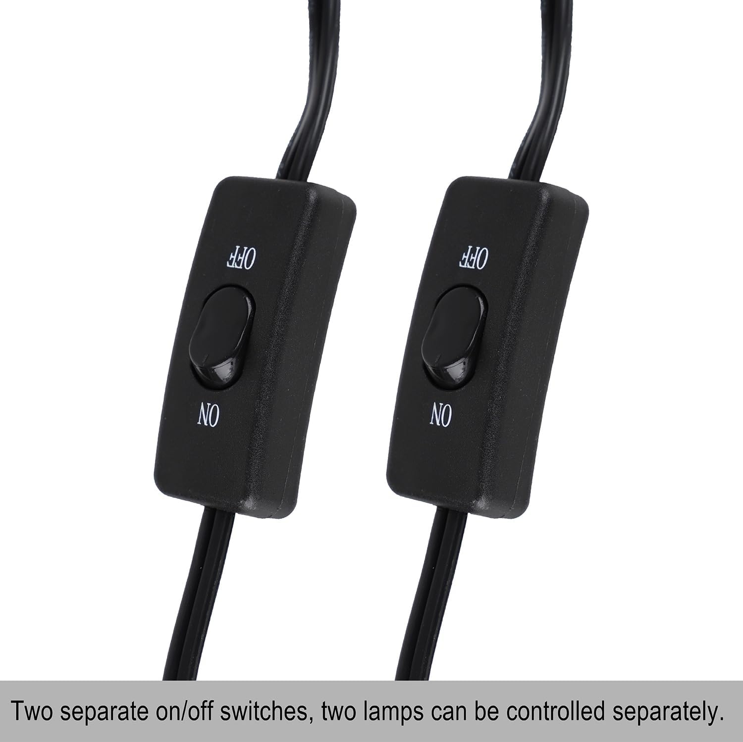 - Two Idependent Switches:This dual reptile lamp fixture has two independent switches and plugs. Two independent switches can control each lamp separately. You can easily set up a comfortable light and temperature environment by equipping different lights and switch lights for your pet.