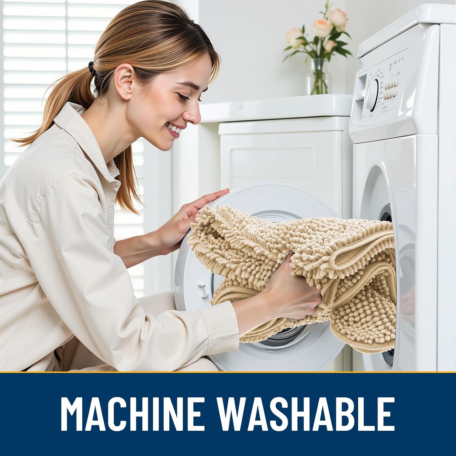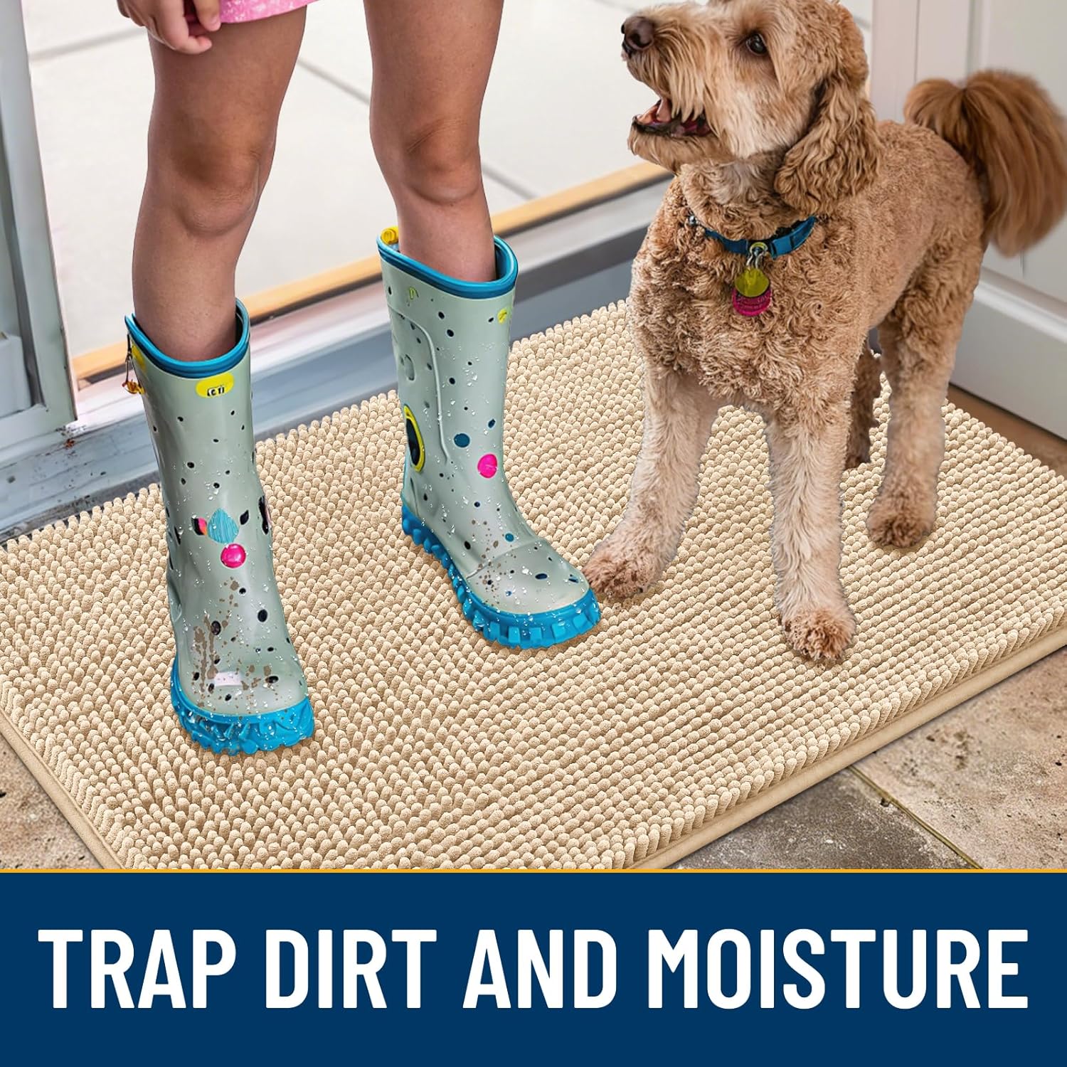 Smiry Dog Door Mat for Muddy Paws 70x32, Absorbs Moisture and Dirt Doormat, Non-Slip Washable Quick Dry Chenille Front Door Mat Indoor Entrance, Entryway Carpet for Inside Floor, Beige