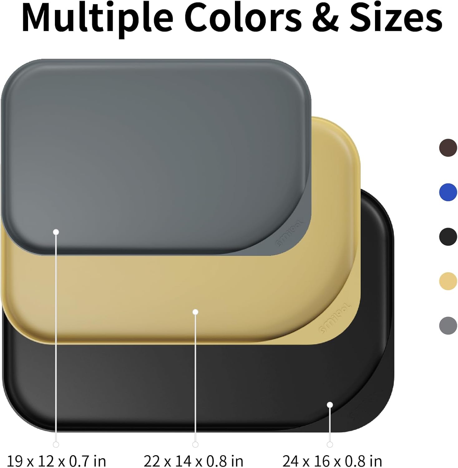 - Pay Attention to Deep Pet Food Mat Size - Our no slip large pet feeding mats round are available in 3 sizes, 19 x 12 x 0.7 inches, 22 x 14 x 0.8 inches and 24 x 16 x 0.8 inches., fitting most small, medium and big rubber mat for dog bowls. Make sure to check if a plastic dog eating mat wide (not hard plastic) fits your pet's bowls and dishes.