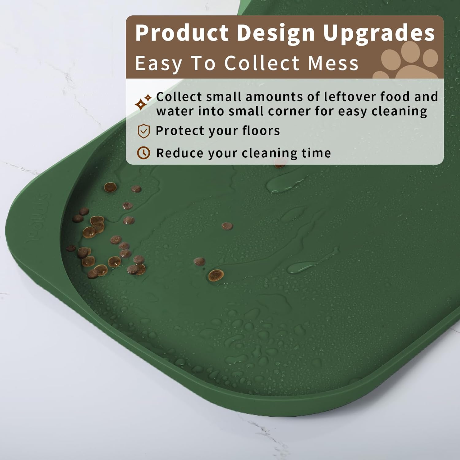Silicone Pet Feeding Mat with Raised Edge & Residue Collection Pocket for Food and Water, Dog Bowl Mats, Cat Bowls Placemat with High Lip for Floor Waterproof, 24 x 16 x 0.8 Dark Olive