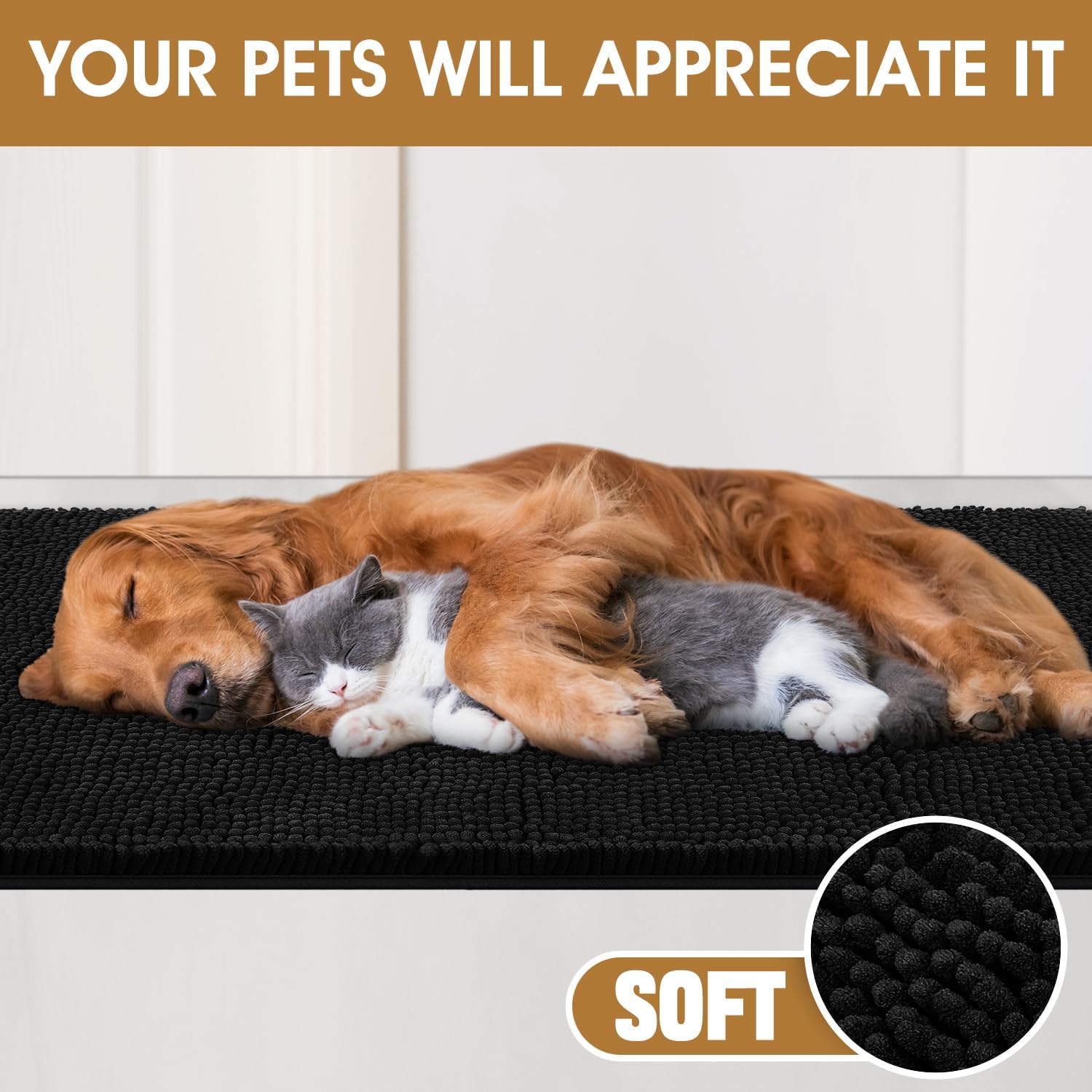 IM HOME Extra Large Dog Door Mats for Muddy Paws, Chenille Absorbent Dog Mats, Non Slip Heavy Mud Mat for Dogs, Soft Pet Mat for Entryway, Mud Paws, Inside Floor,71" x 25", Black