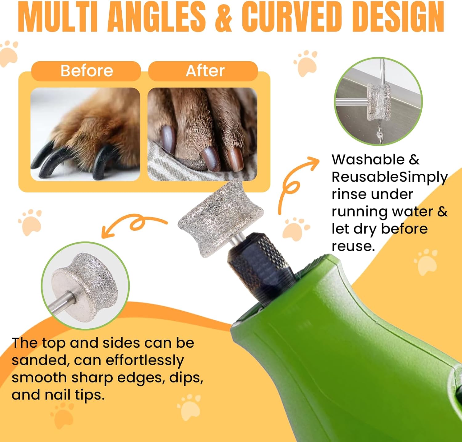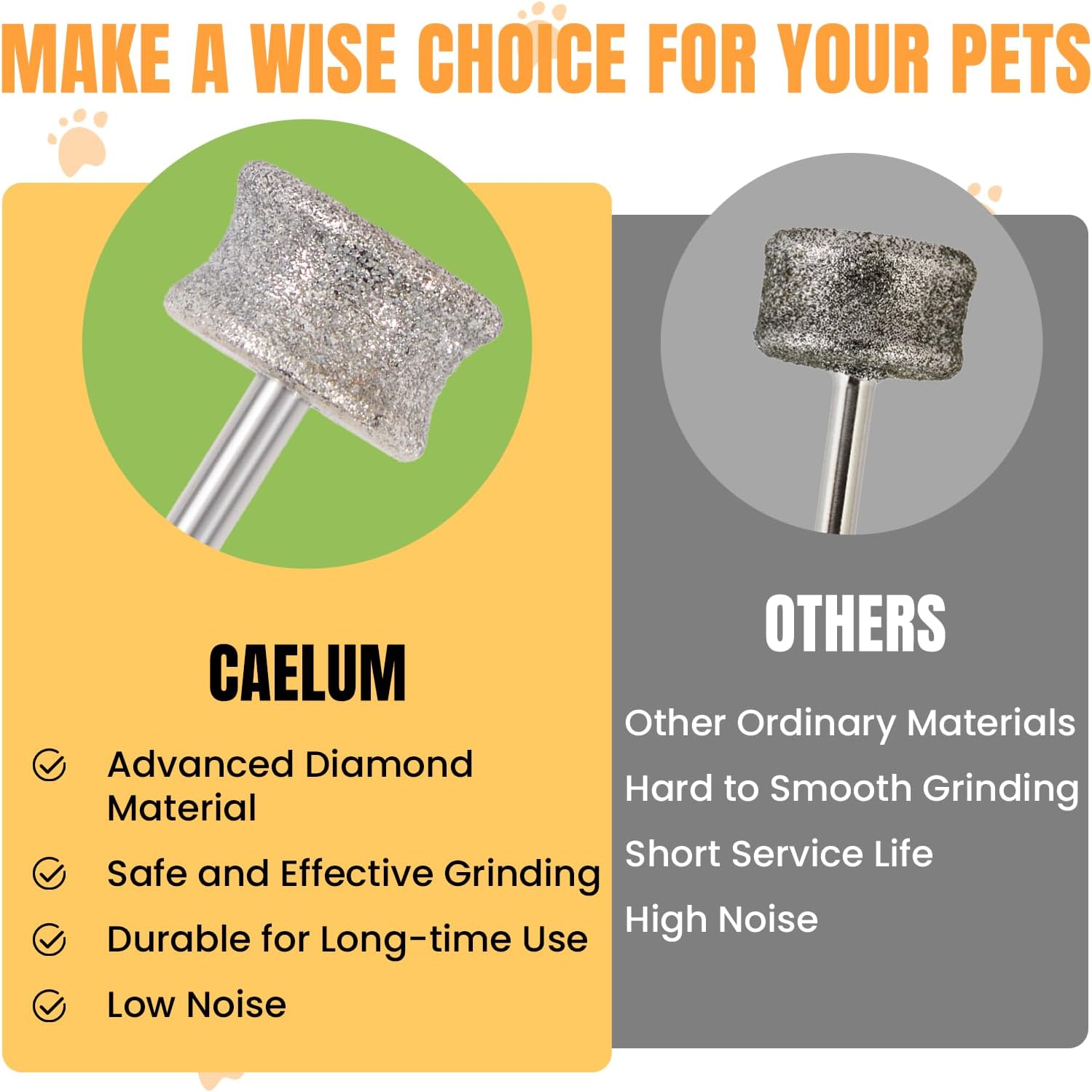 - [Durable & Rust-Resistant] Made with eco-friendly iron and stainless steel, plus an electroplated diamond grit head. It’s tough, and built to last through repeated grooming. Tip: For best results, use with a professional pet nail grinder. Let pets gradually get used to the tool's sound and vibration