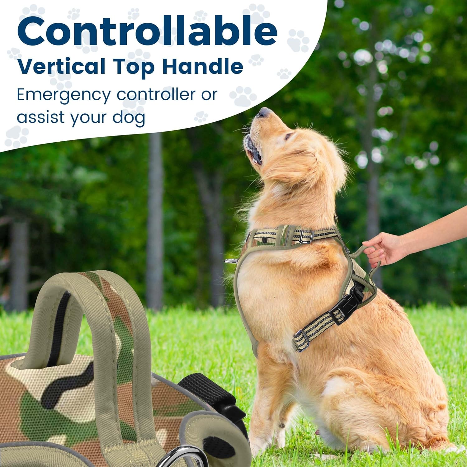 Funfox Dog Harness No Pull, Adjustable Pet Vest Harness, Super Soft Material with Vertical Handle Easy Control, Reflective Night Walking, 2 Leash Clips for Small Sized Dogs, Camo Green, S