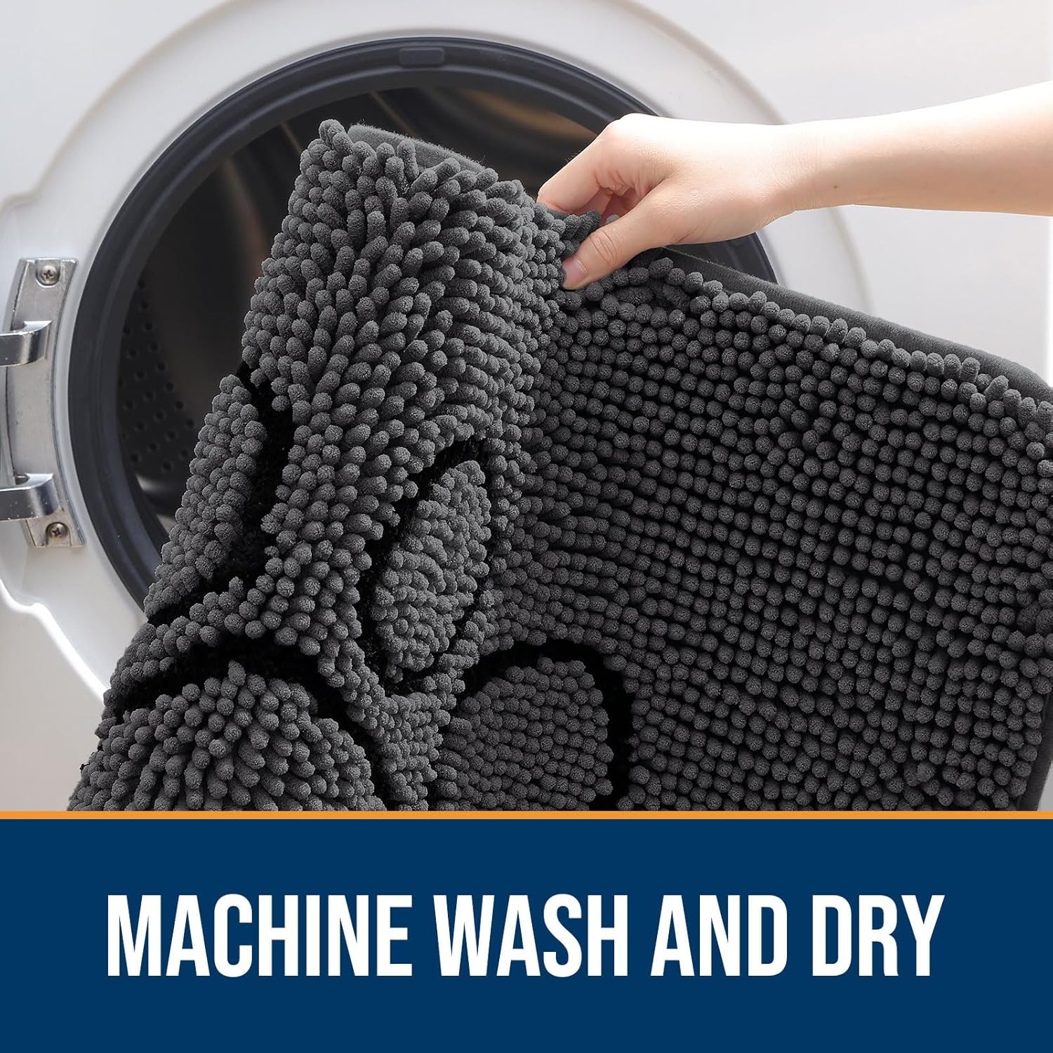 OLANLY Door Mat for Muddy Dog Paws 36x24, Absorbent Chenille Doormat with Paw Print Design, Non-Slip Washable Doormat for Indoor Entryway, Quick-Dry Pet Bed Mats for Dirty Dogs, Dark Grey and Black