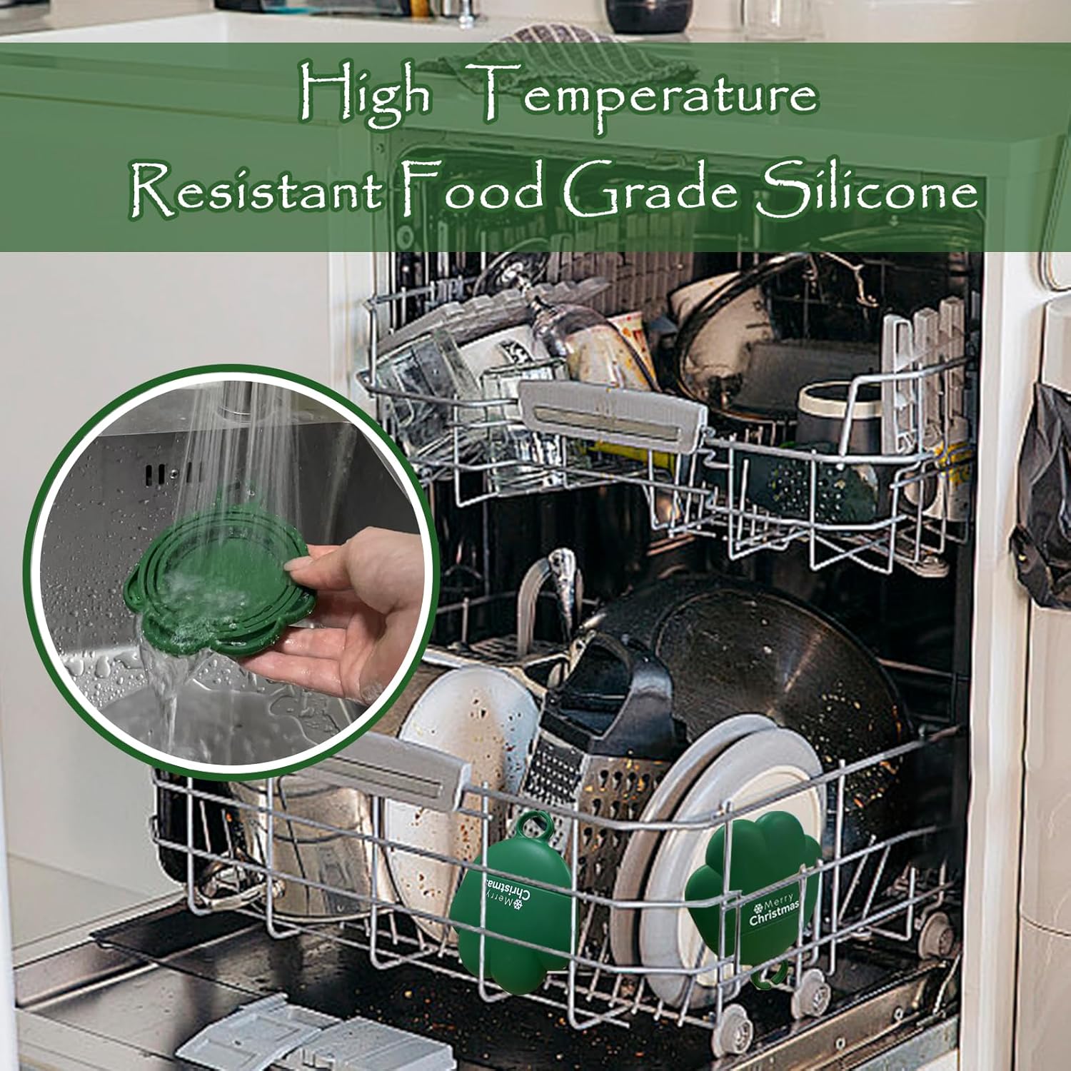 Christmas Pet Set - 3 Cat Food Can Lids & 1 BPA-Free Opener | Cute Paw Shape Can Covers and Opener Spatula Spoon for Wet Food | Silicone Spoon & Covers for Dog Cat - Paw Green