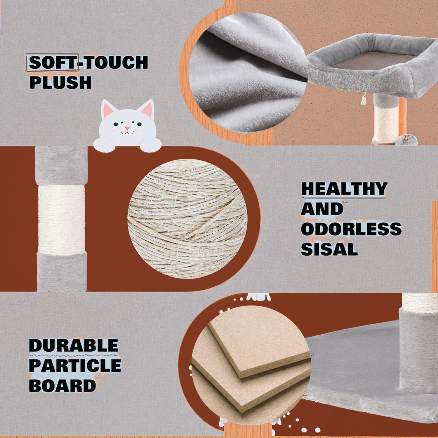 - Premium & Pet-Safe Materials: Built with CARB P2-compliant particle board, soft plush fabric, and extra-durable sisal—because longevity matters
