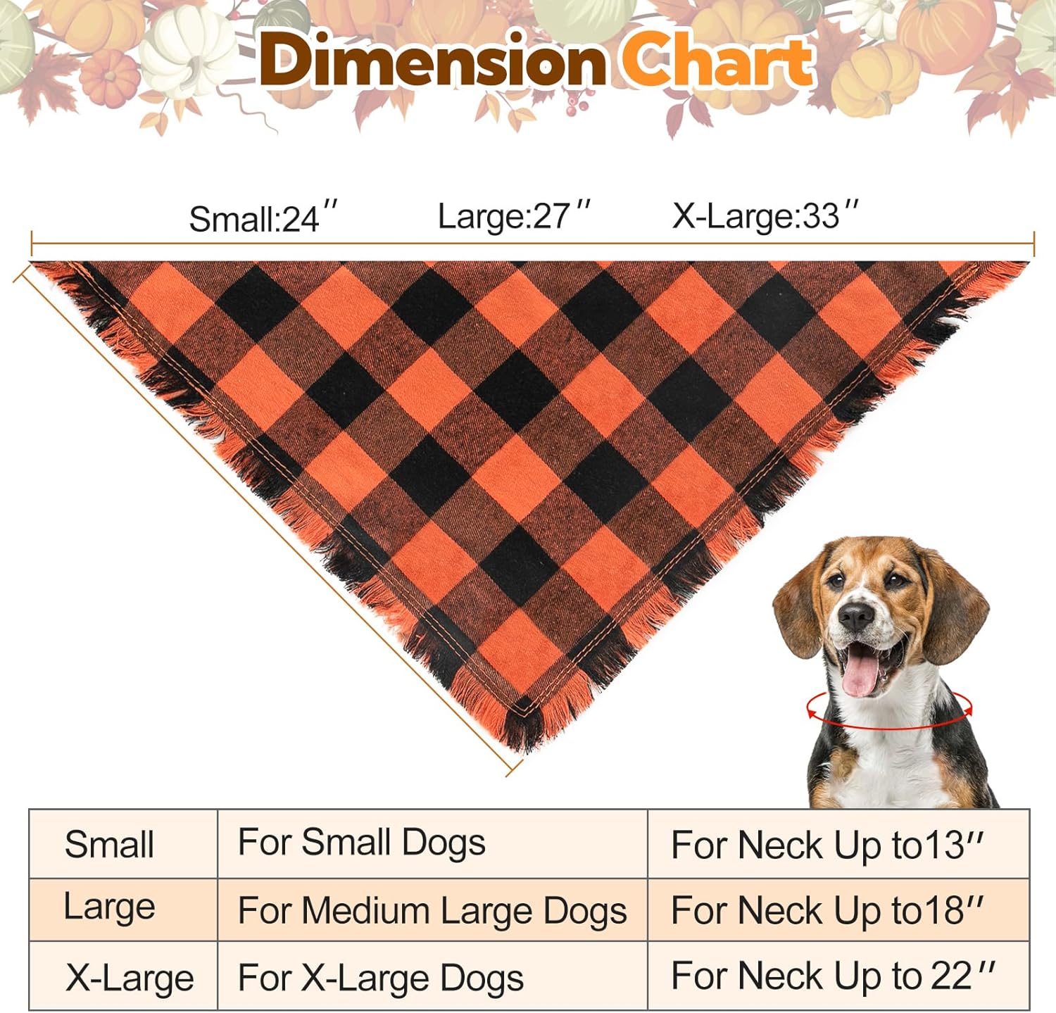 Kytely Dog Bandana Fall XLarge 2Pack, Halloween Autumn Dog Bandanas, Orange Plaid Pet Scarf for Boy and Girl, Holiday Bandana Reversible Triangle Bibs Accessories for Dogs Pets