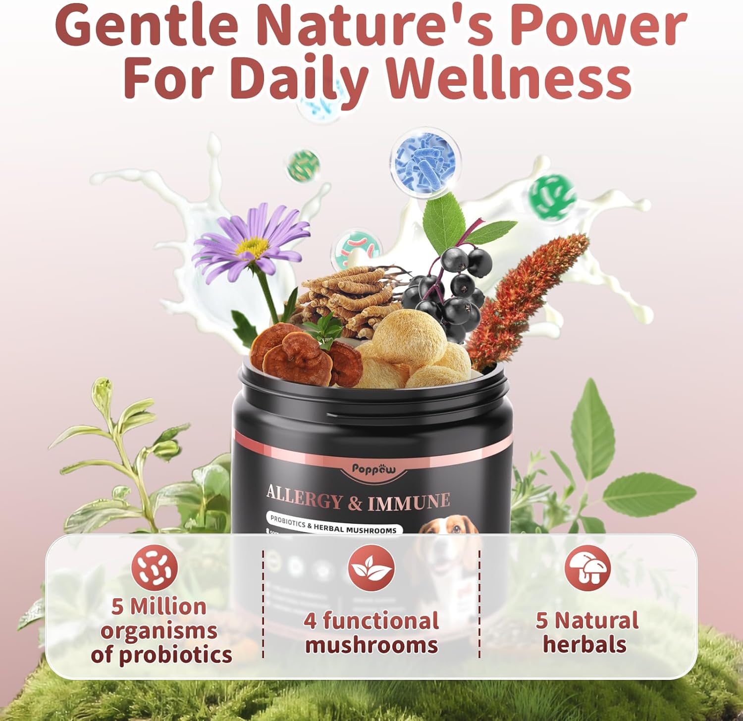 - Nature's Immune Trifecta: Boost your dog's overall immune health with our probiotics supplement featuring ganoderma lucidum, turkey tail mushroom, and echinacea for overall immune support through multiple pathways