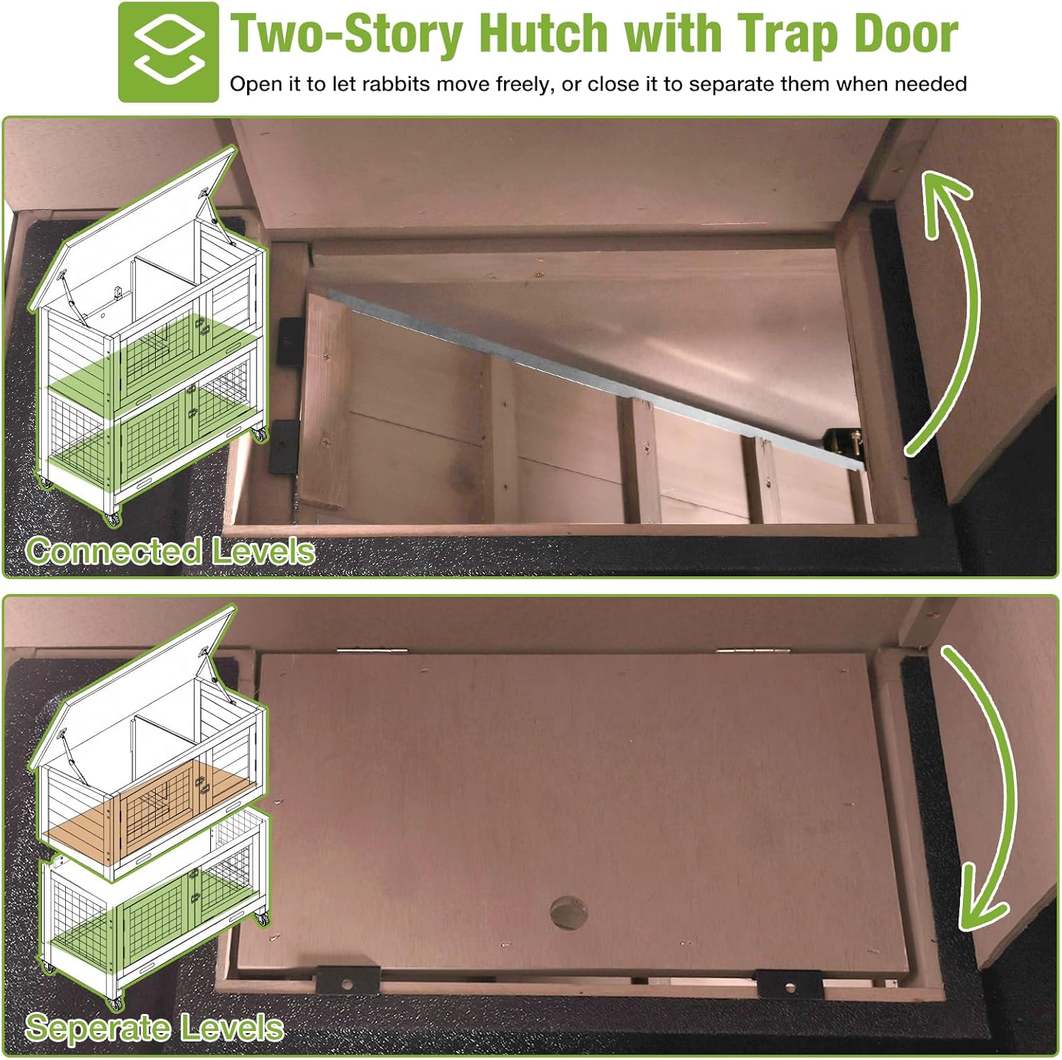 GUTINNEEN Rabbit Hutch Indoor Mobile Outdoor Bunny Cage with Openable Middle Door, Two Story Guinea Pig Cage with Wheels, 36" L x 17.7" W x 36.4" H