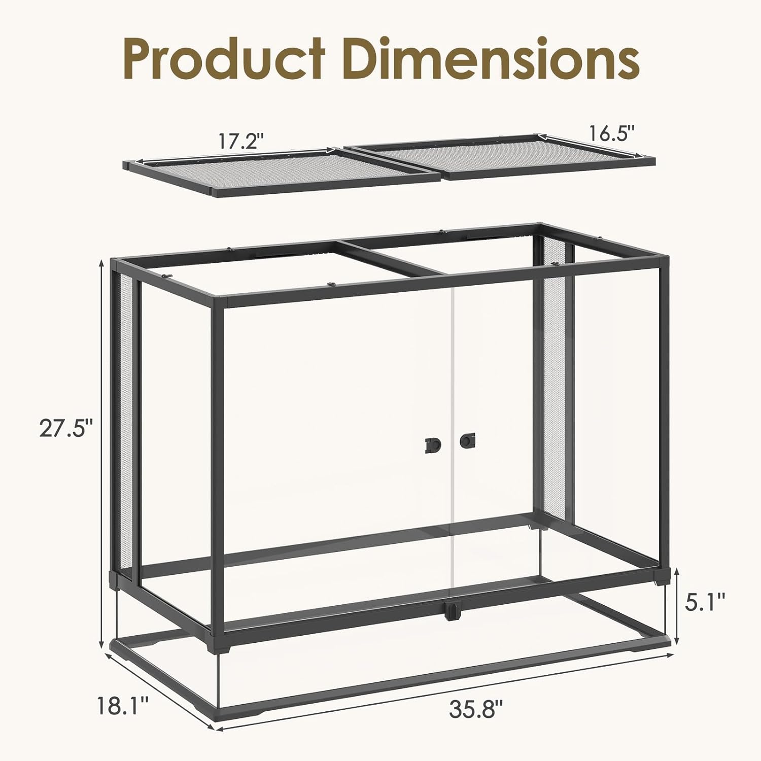 - Heating-Compatible Raised Base & Cable Port: This reptile tank features a raised base compatible with heating mats and a top sliding cable port, allowing easy wiring for heaters or lights while keeping cords hidden